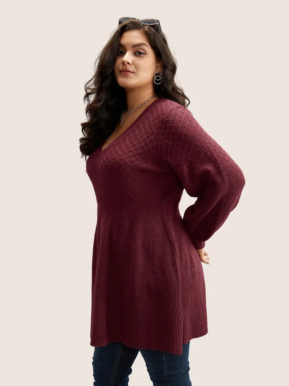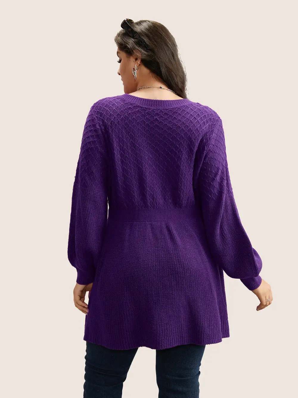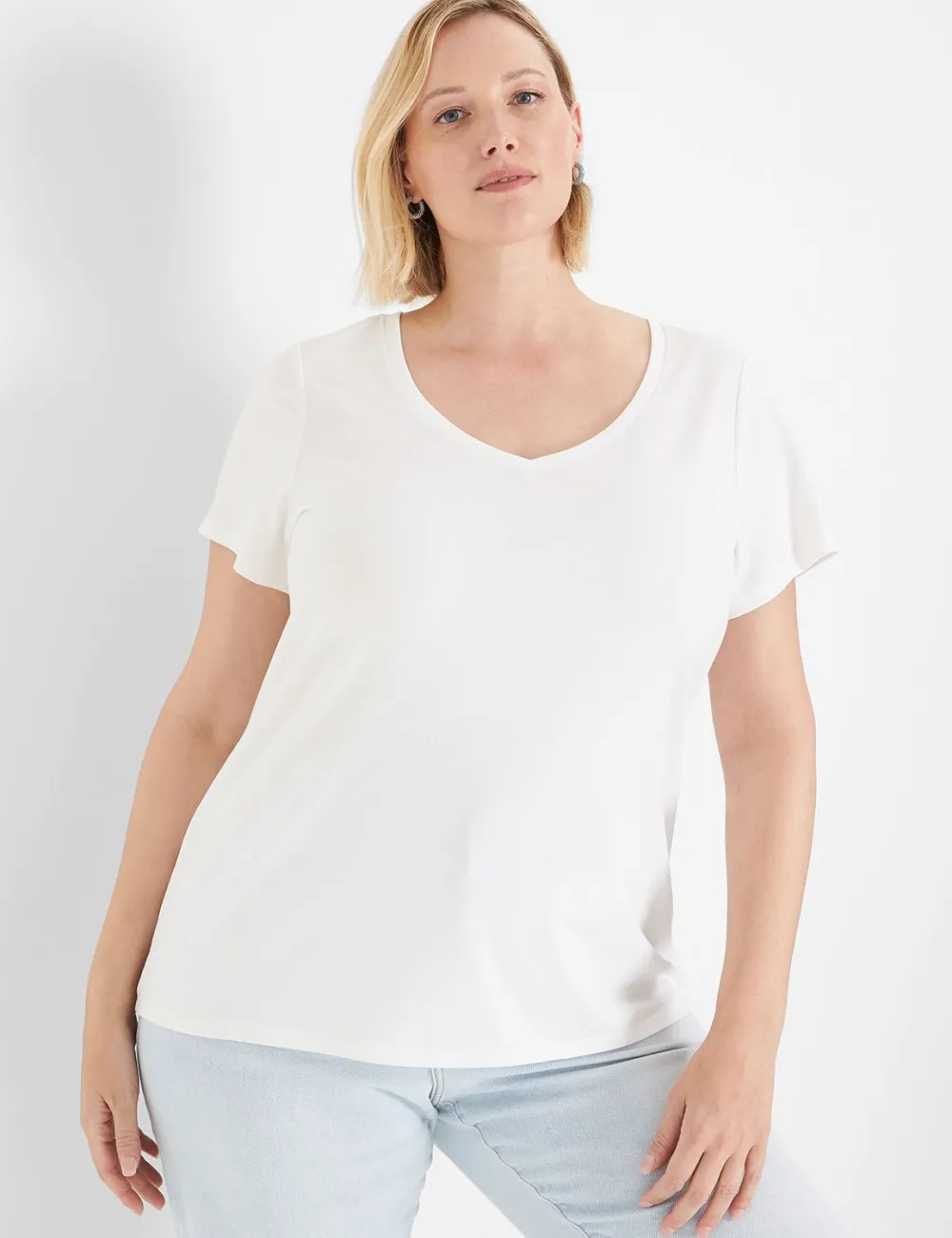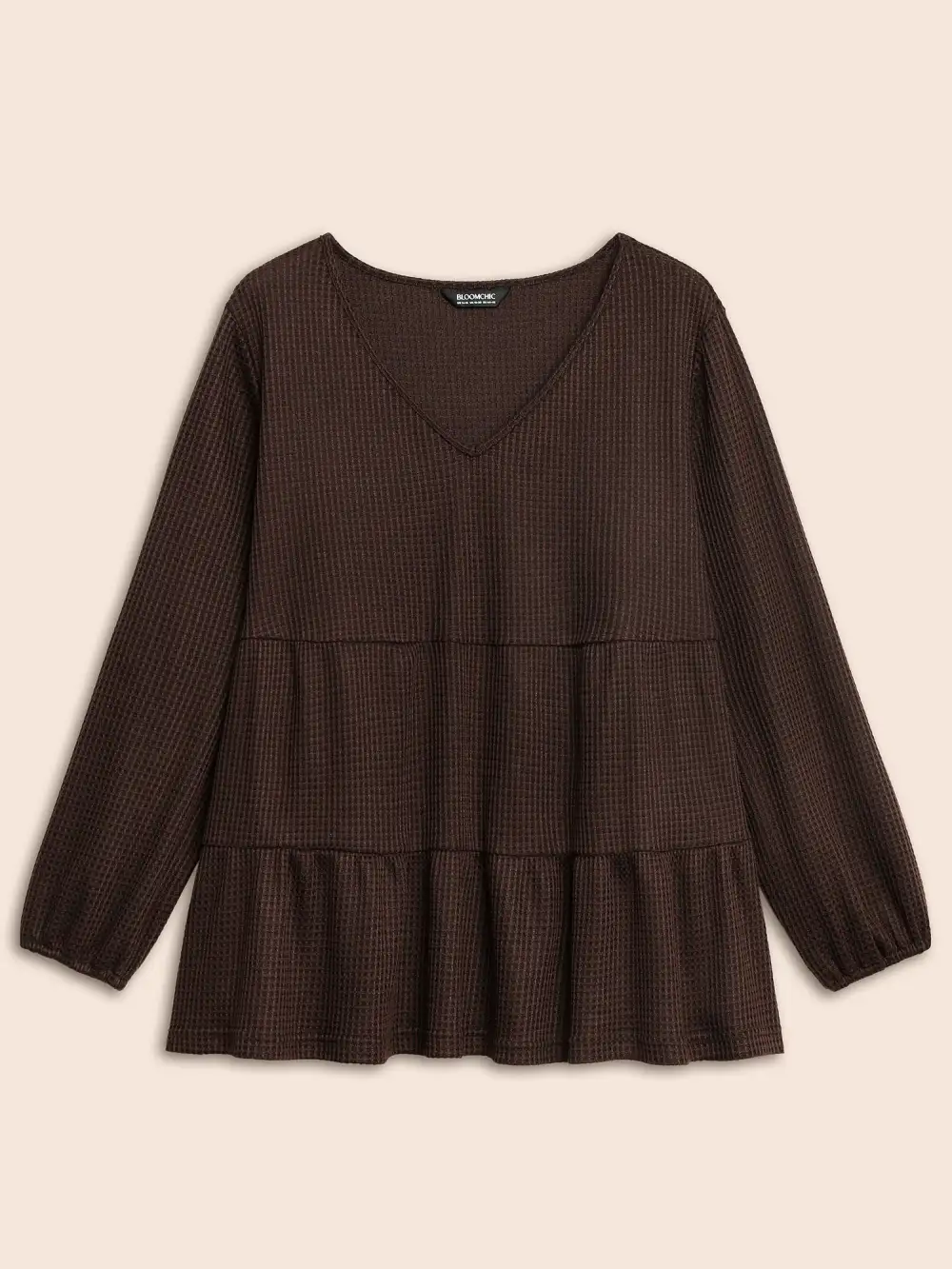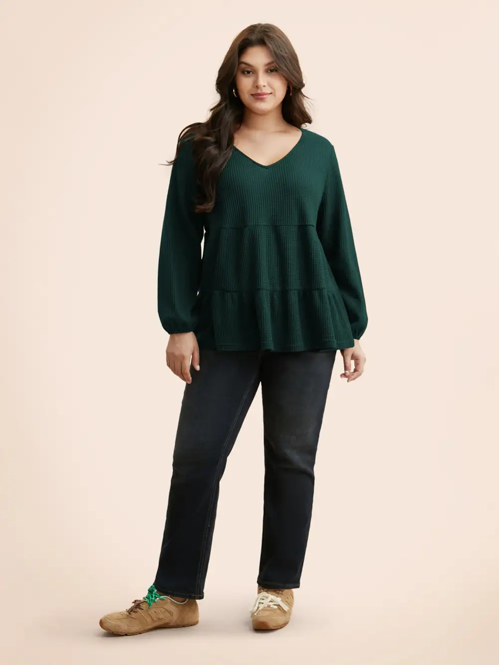 Solid Waffle Knit Ruffle Hem T-Shirt
