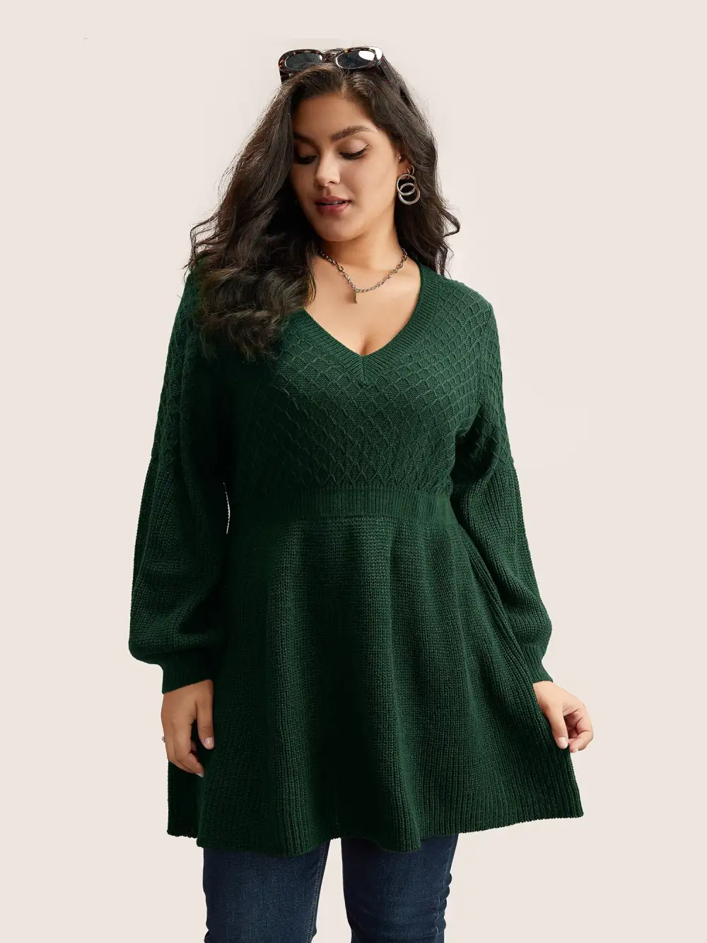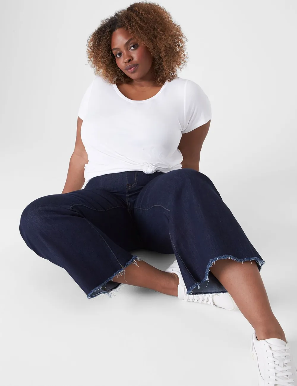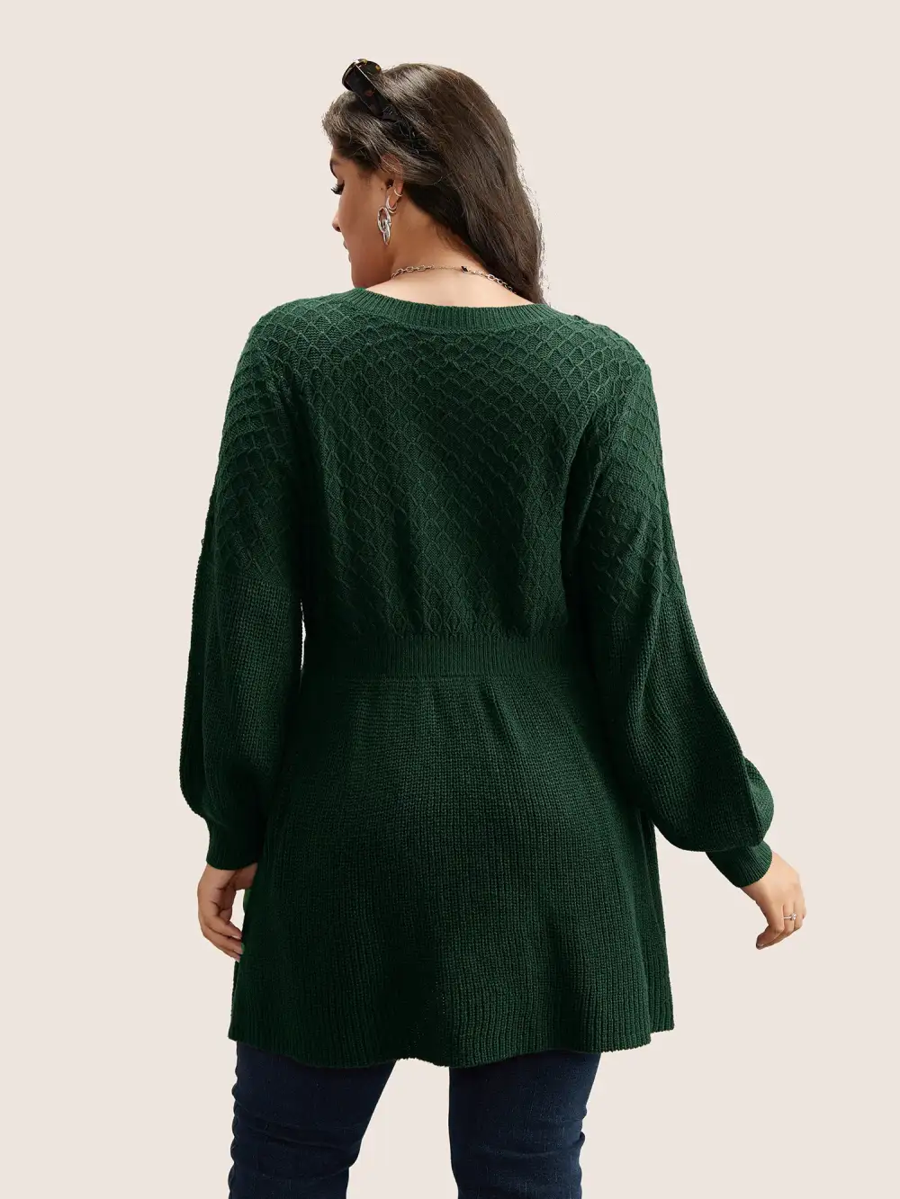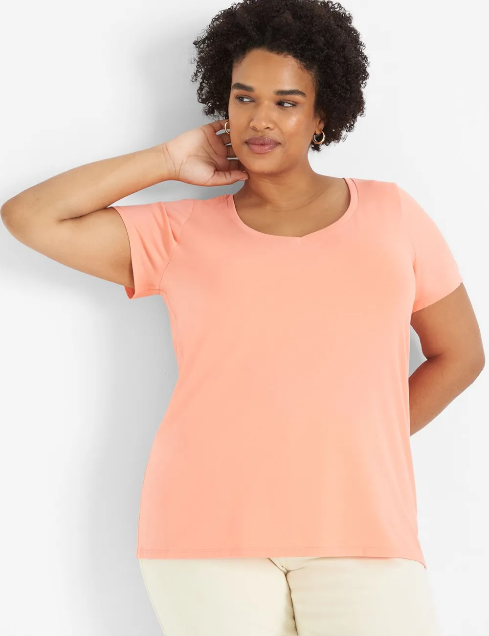 Solid Waffle Knit Ruffle Hem T-Shirt