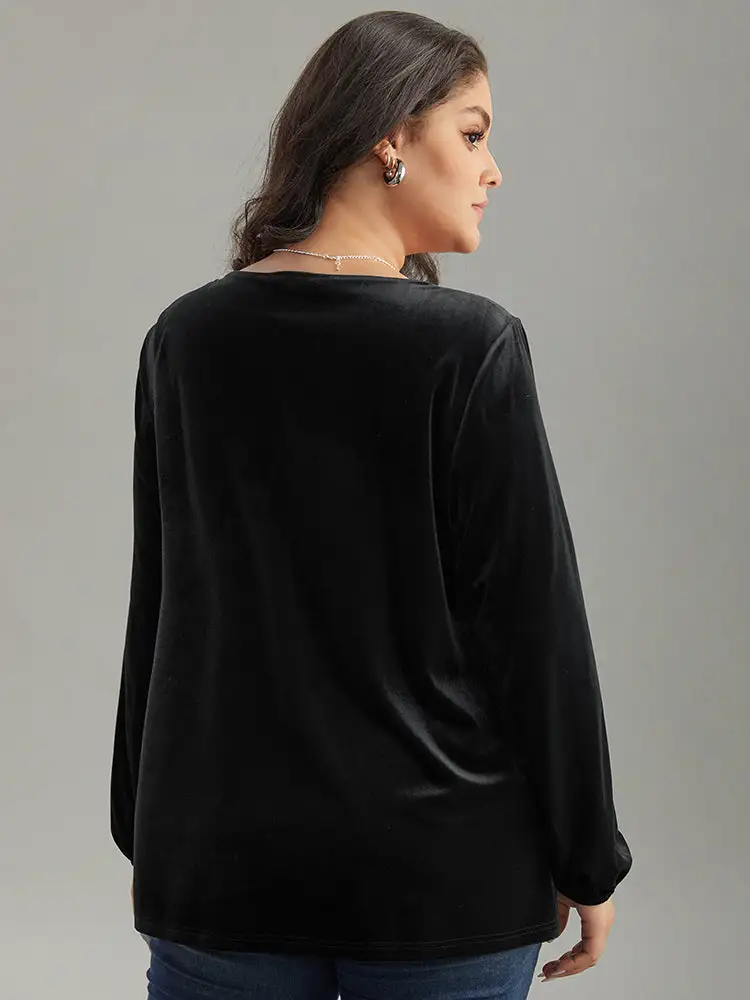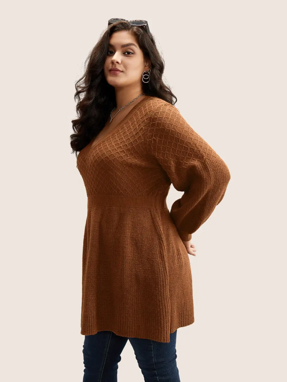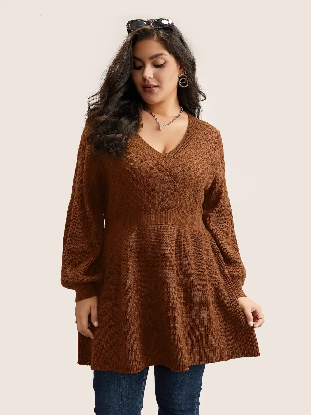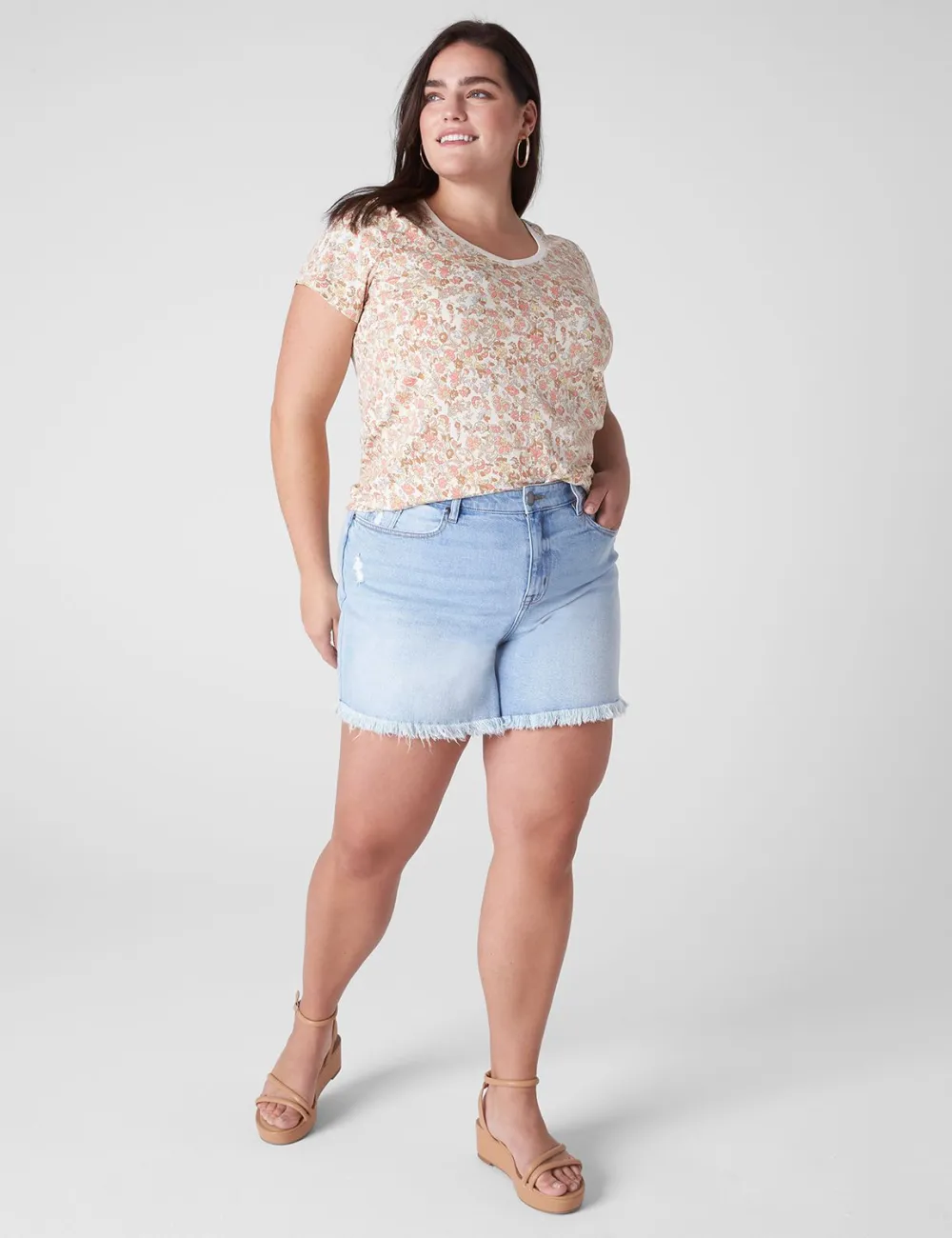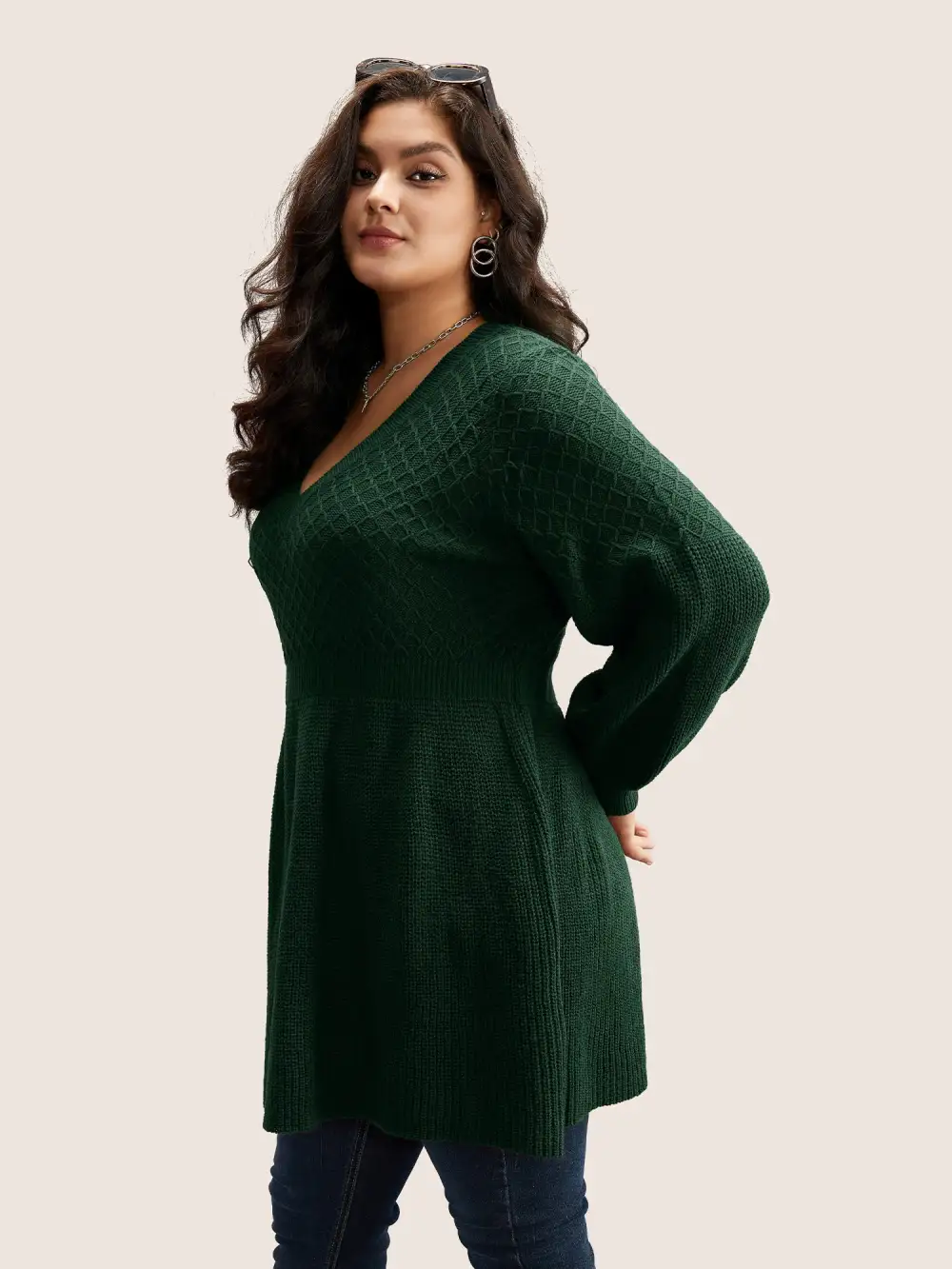 Solid Waffle Knit Ruffle Hem T-Shirt