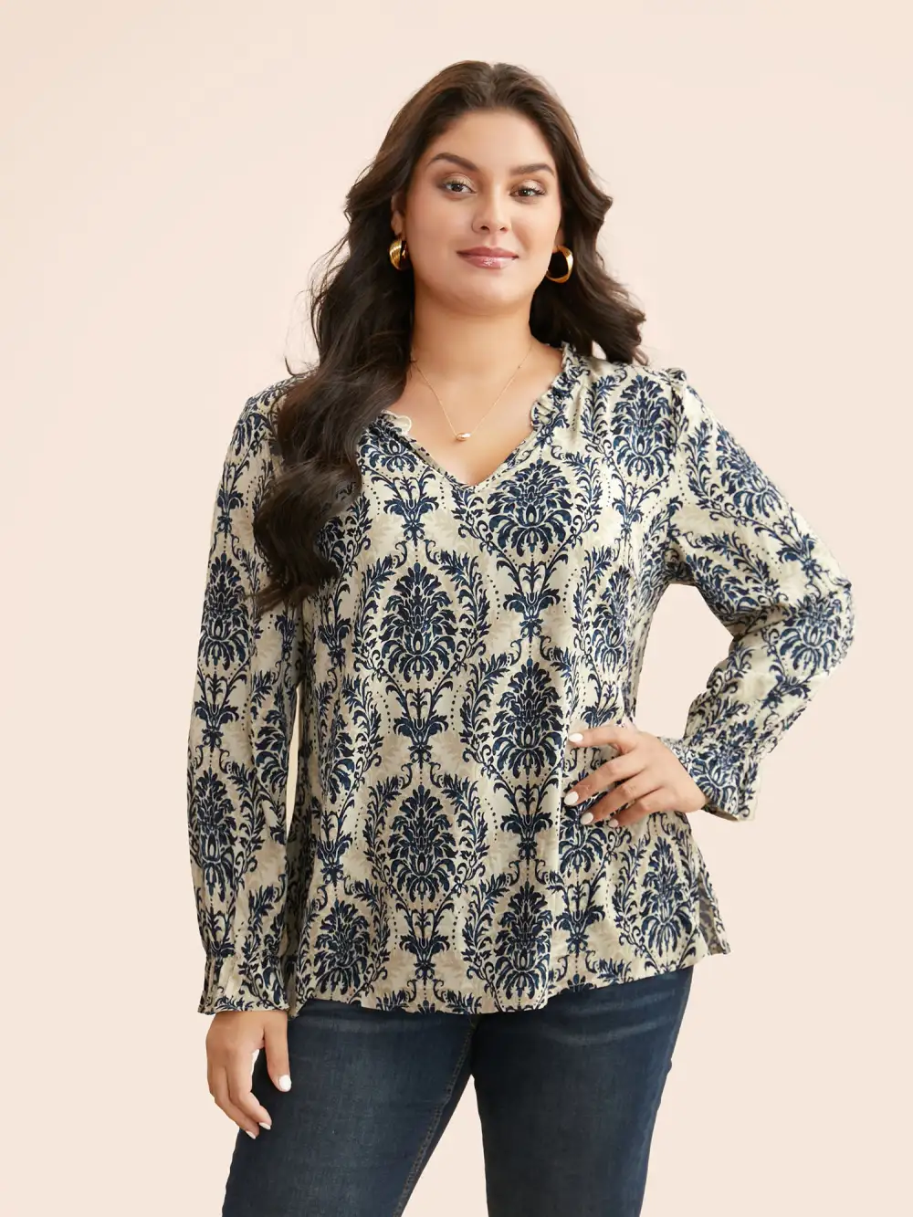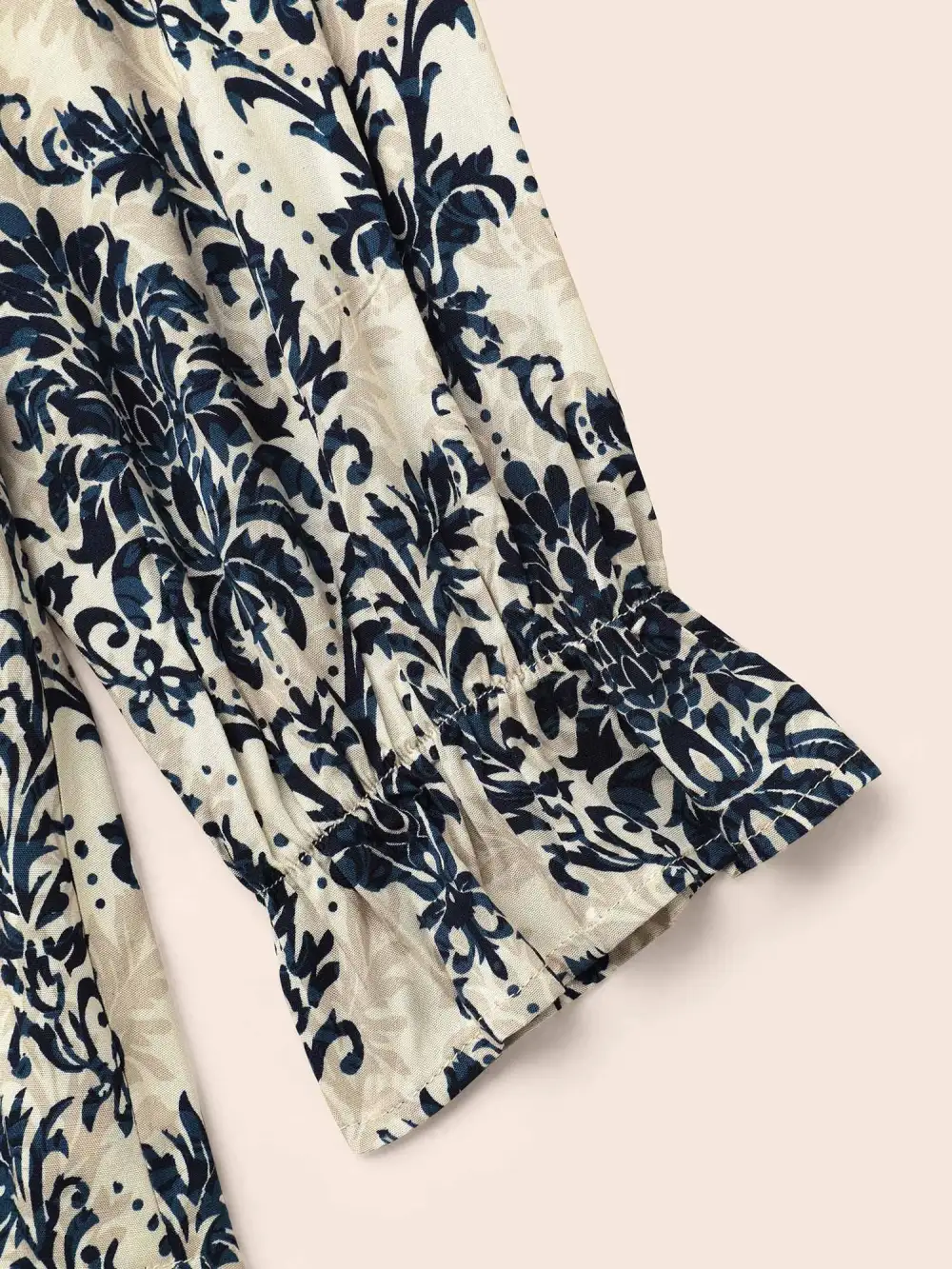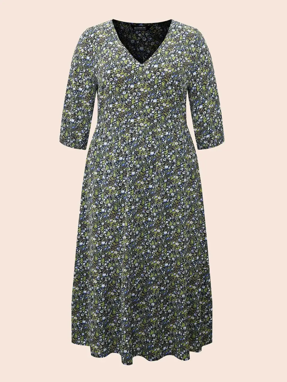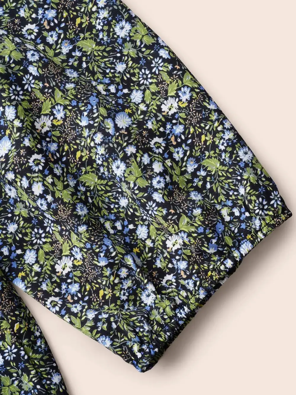 Ditsy Floral Lantern Sleeve Ruffle Hem Dress