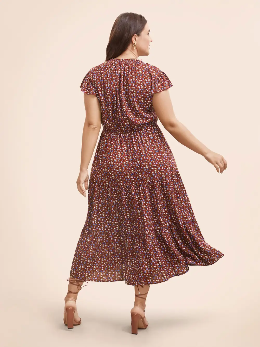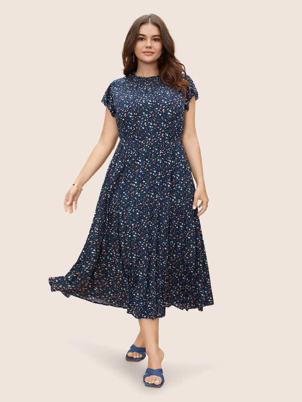 Ditsy Floral Ruffle Cap Sleeve Dress