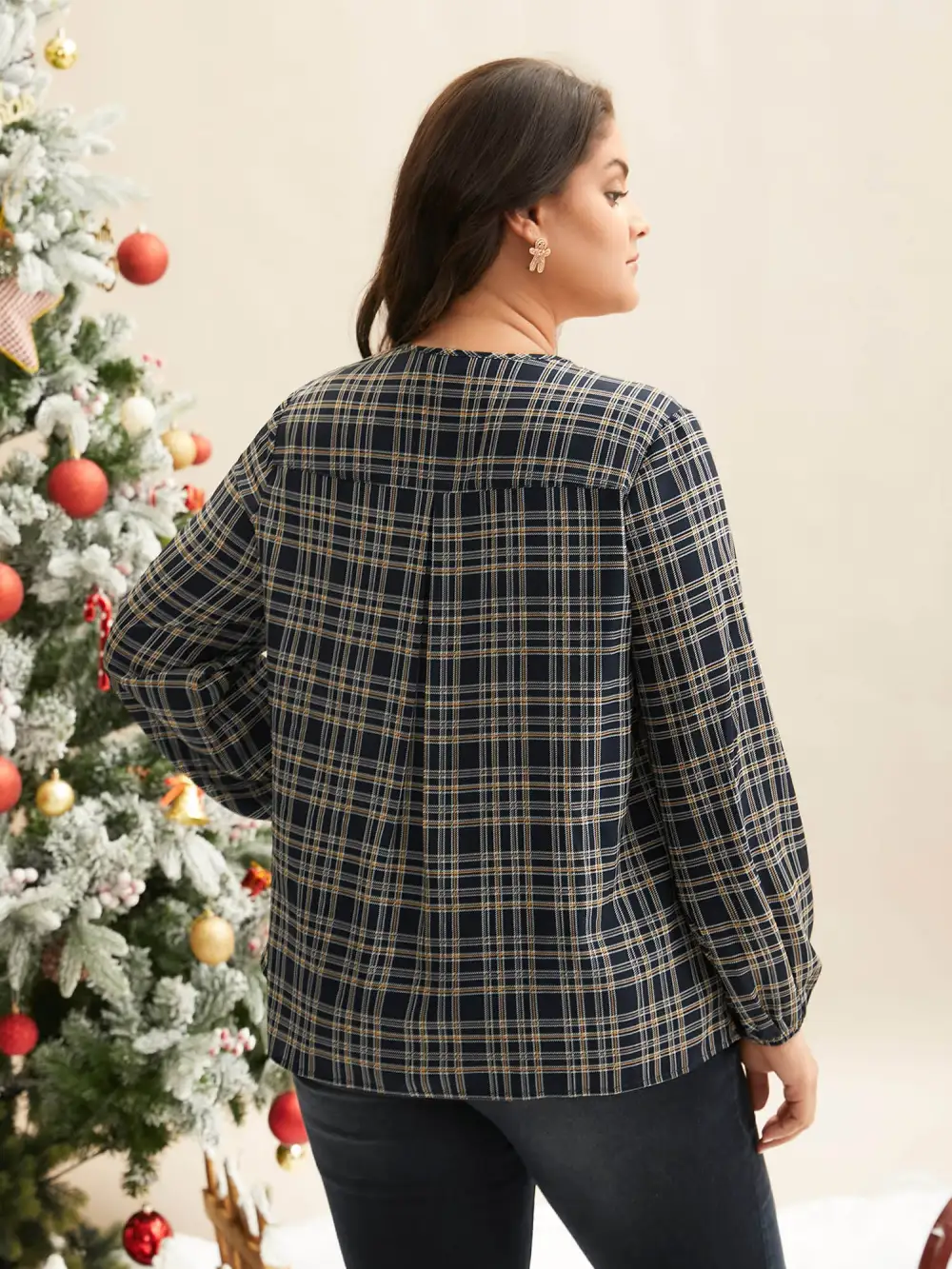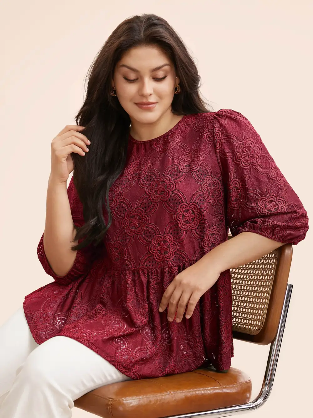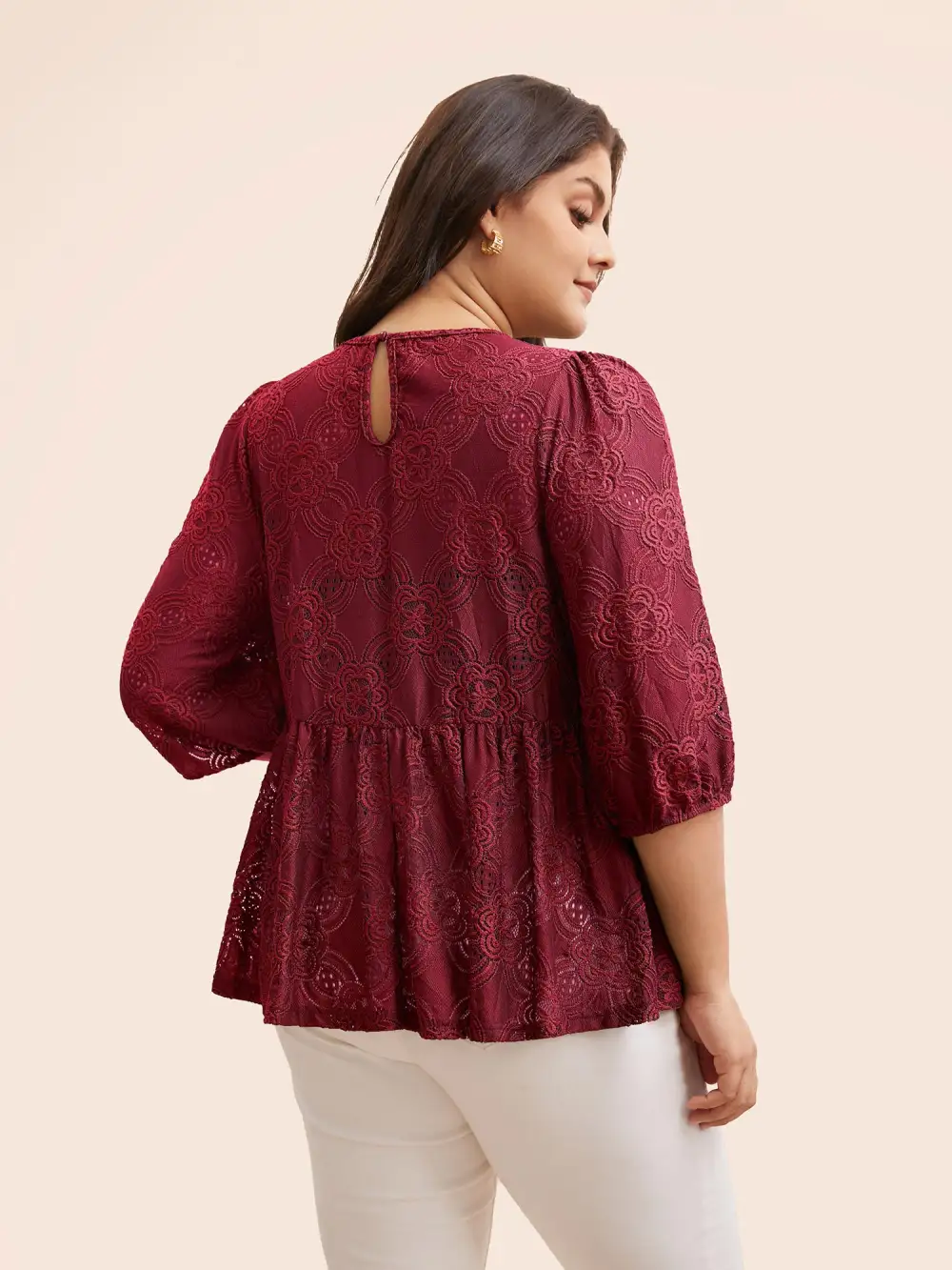 Crew Neck Crochet Lace Lantern Sleeve Blouse