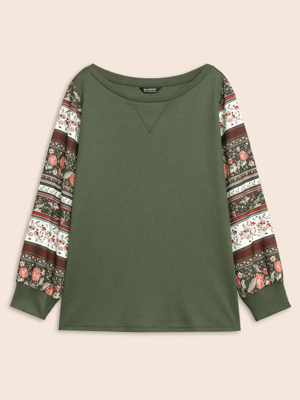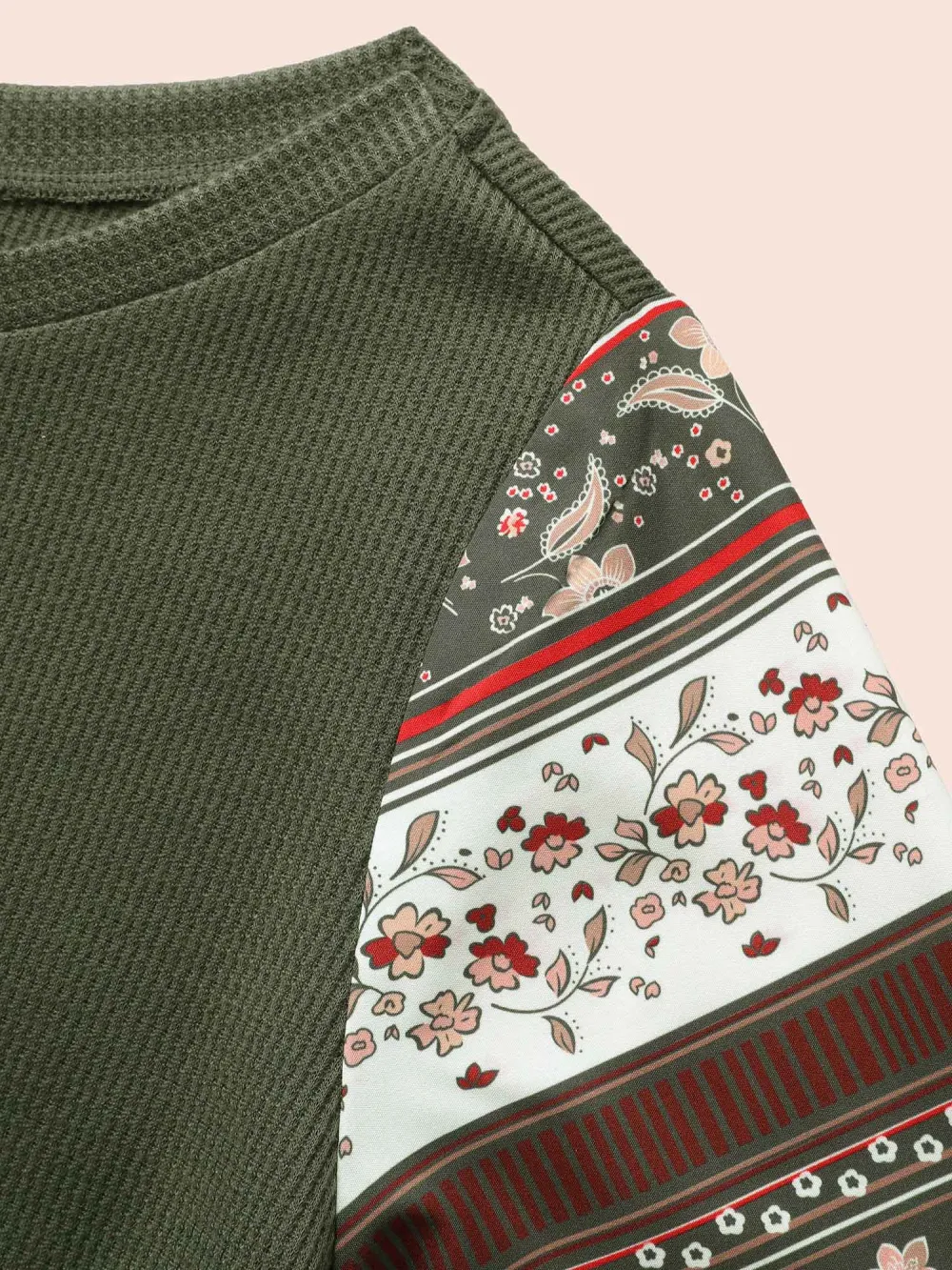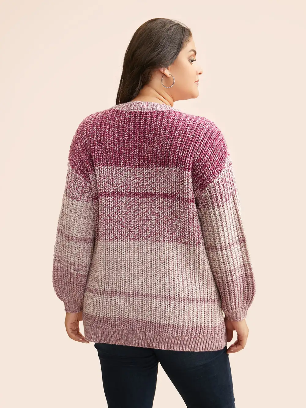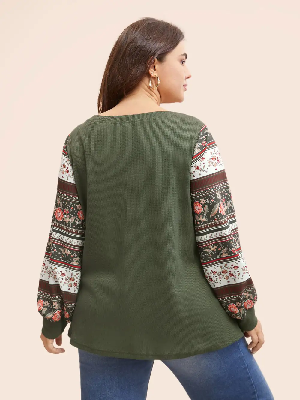 Crew Neck Crochet Lace Lantern Sleeve Blouse
