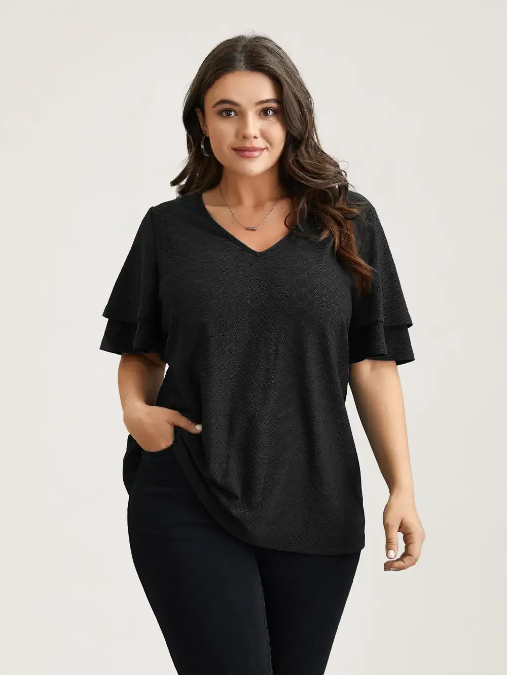 Jacquard Textured Lotus Leaf Sleeve Top