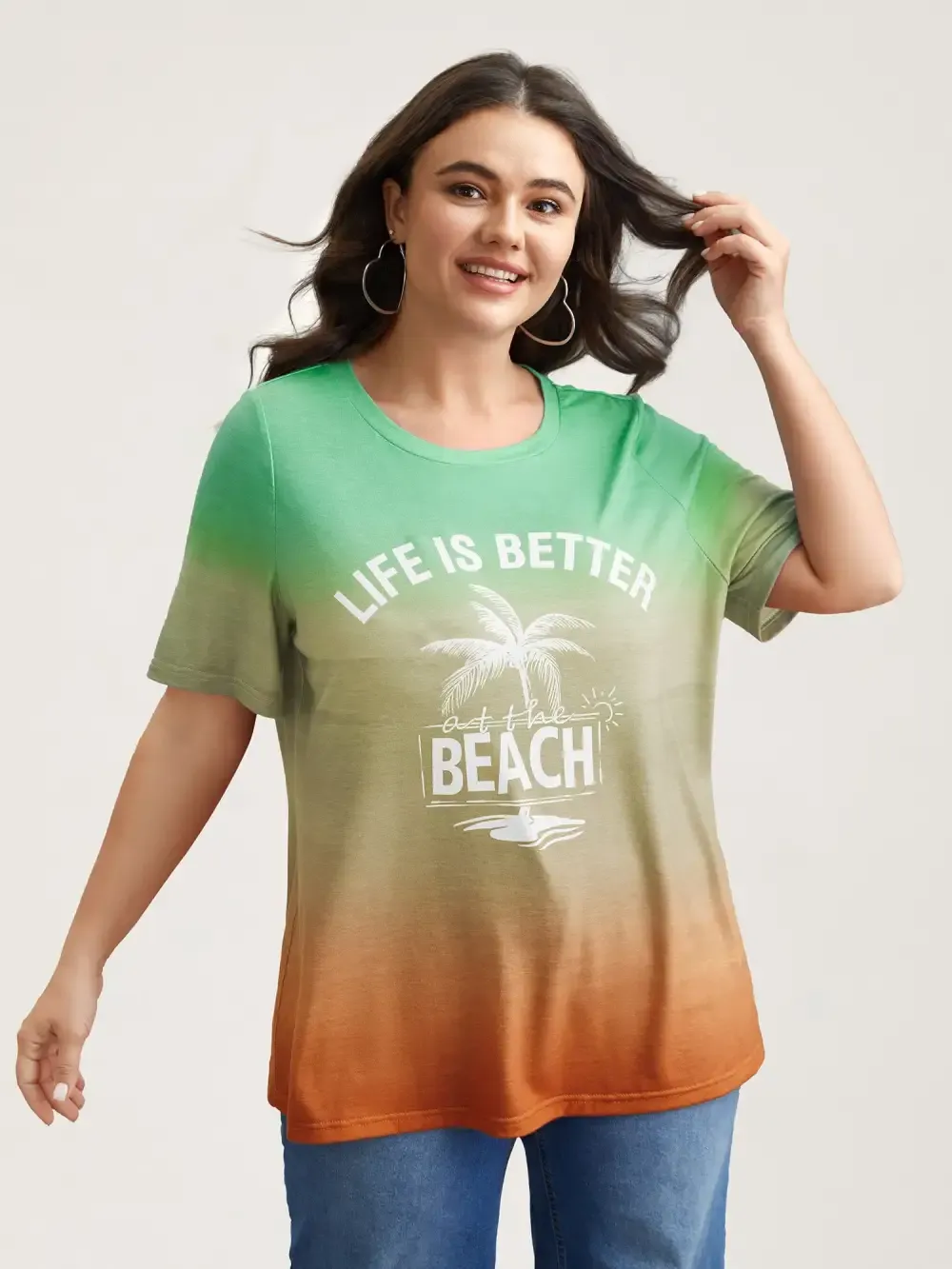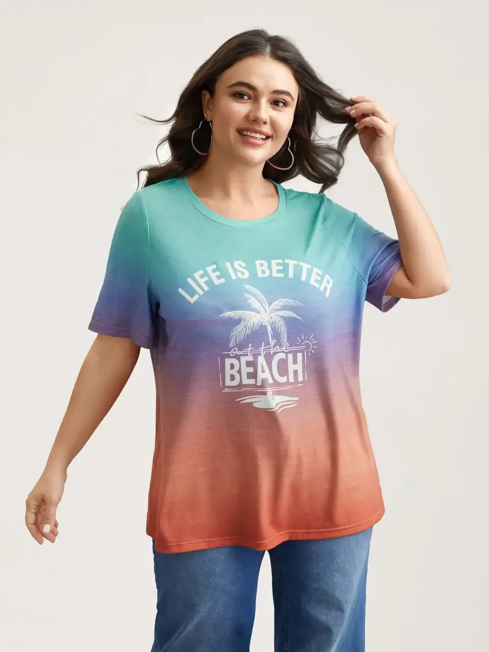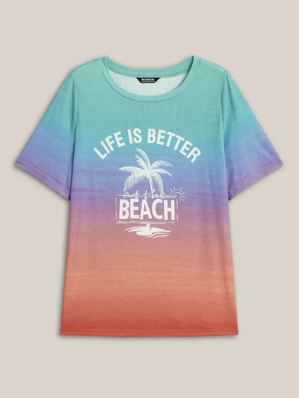Gradient Beach Print Fitted T-Shirt