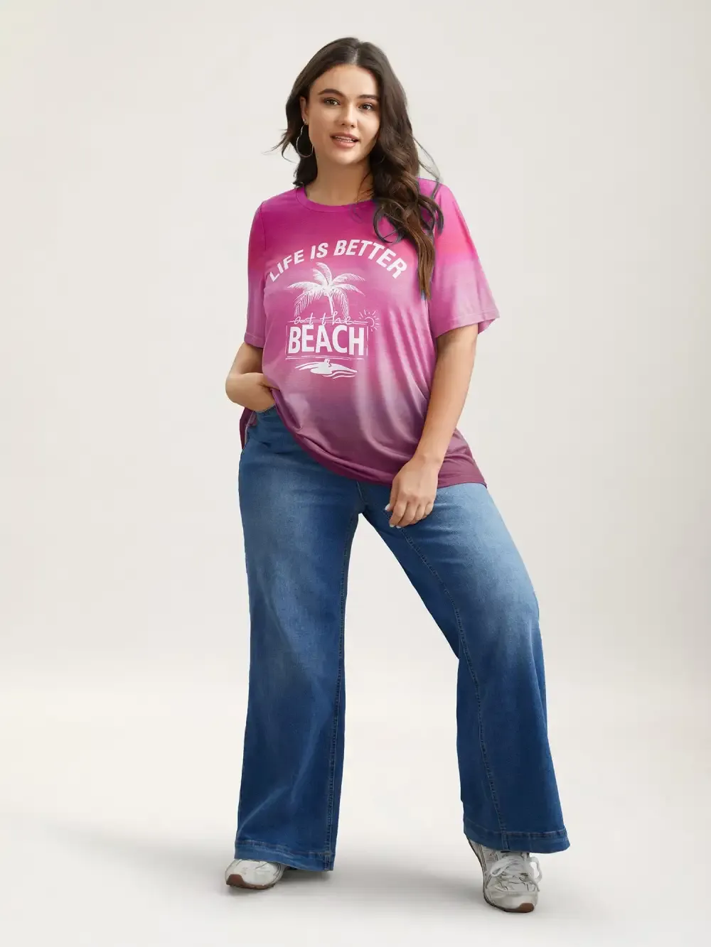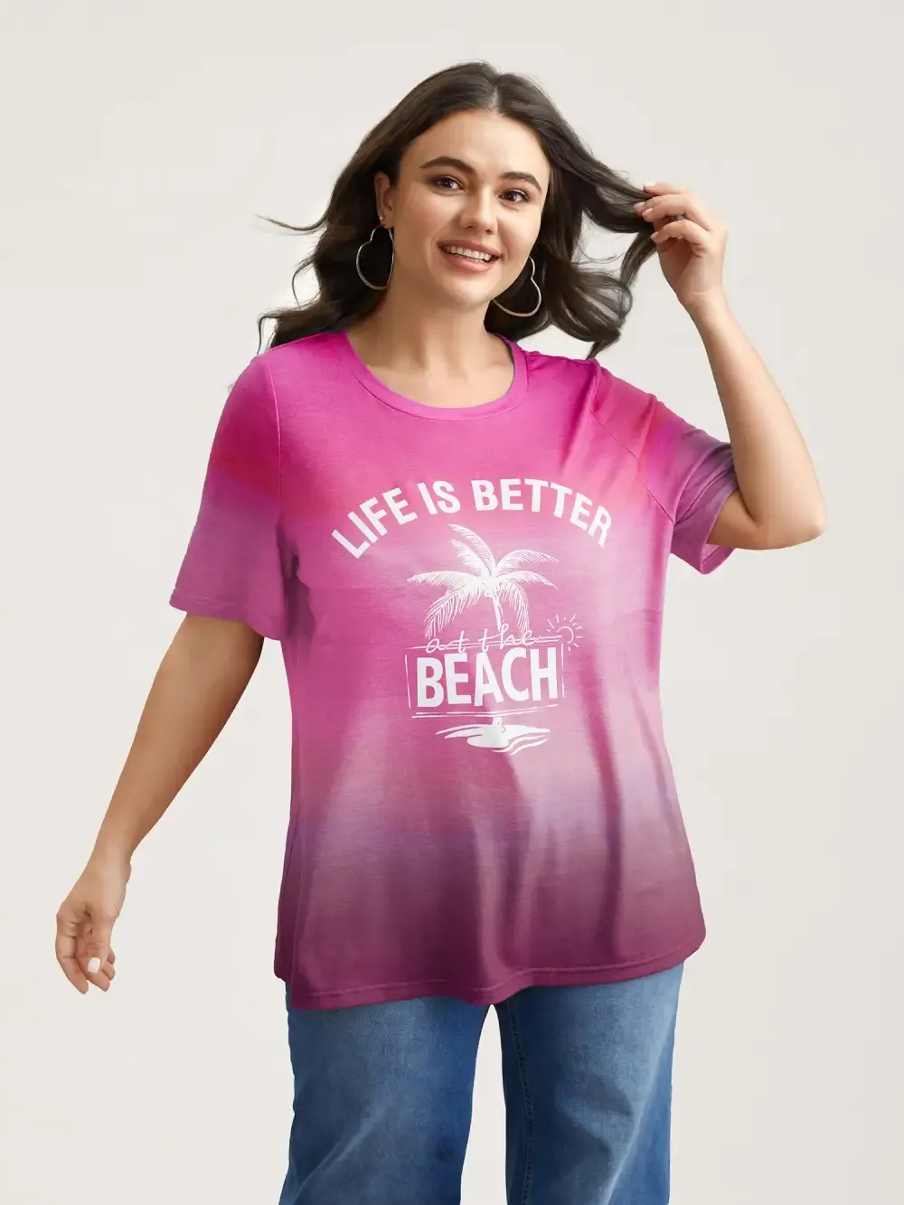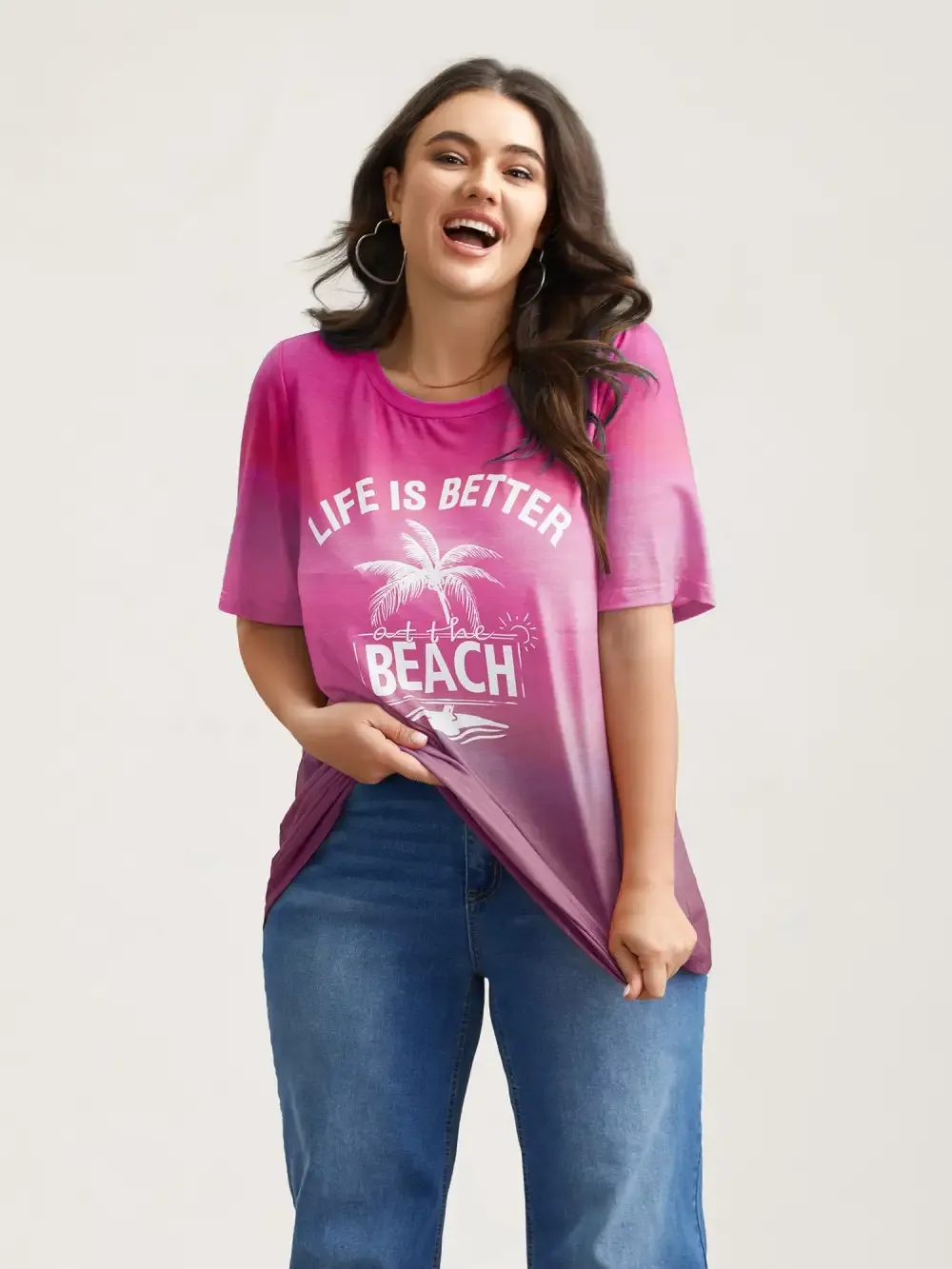 Gradient Beach Print Fitted T-Shirt