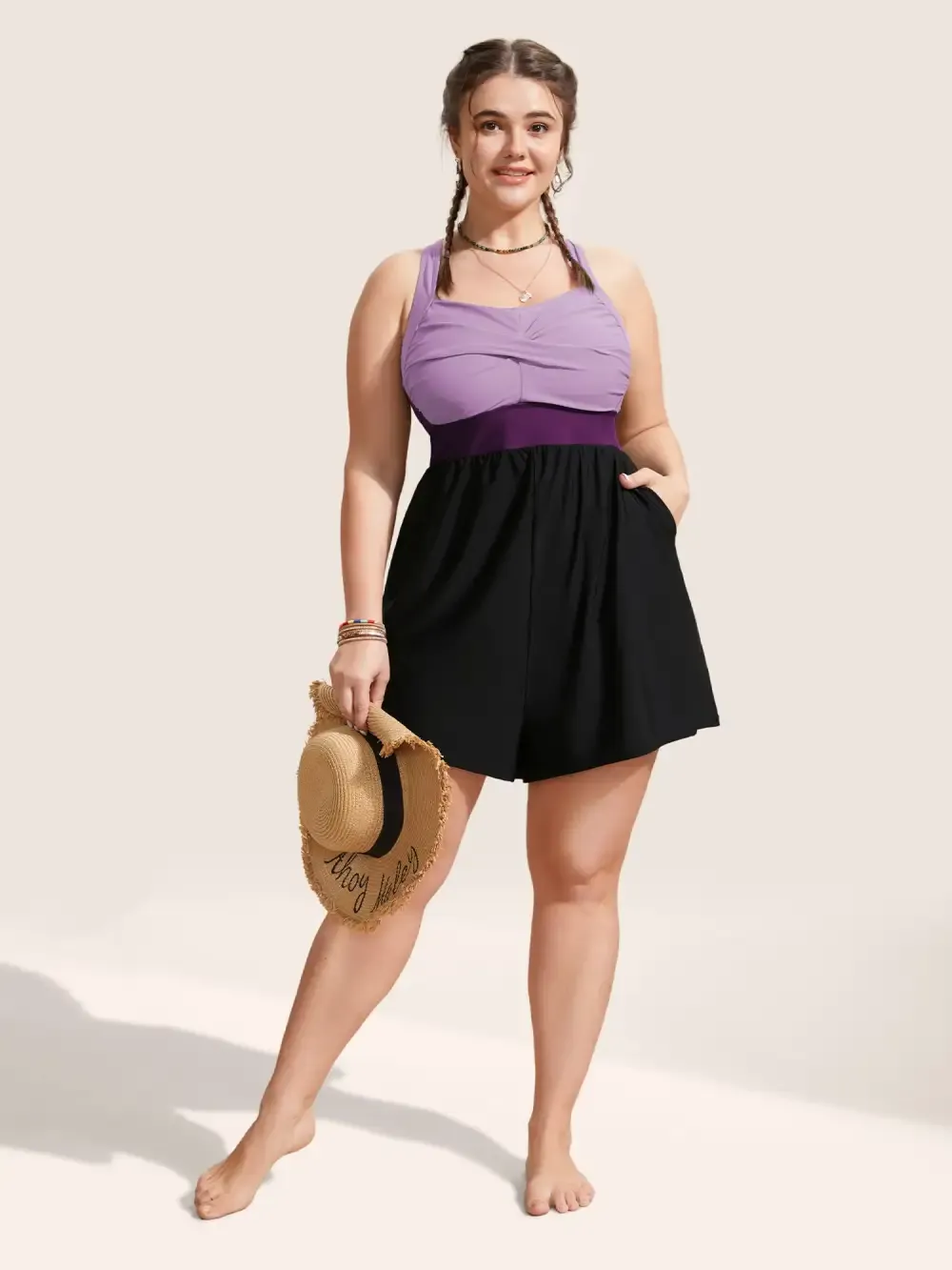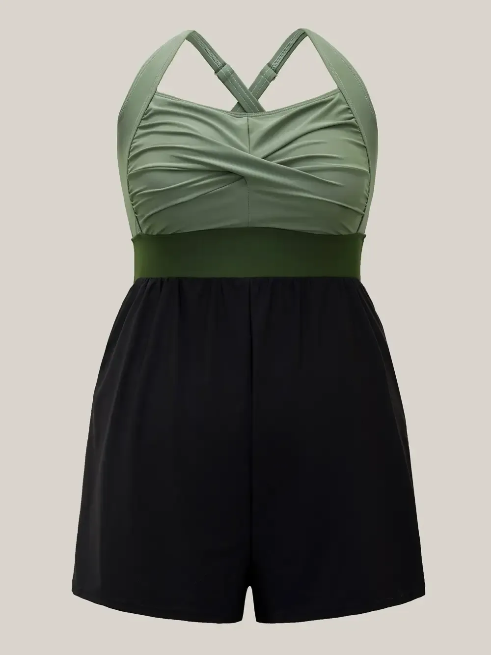 Patchwork Contrast Crossover One Piece Swimsuit