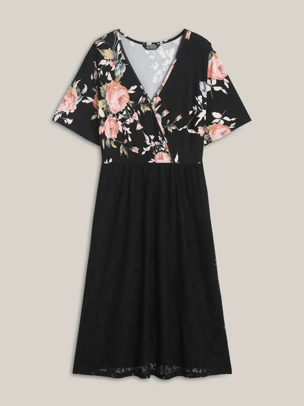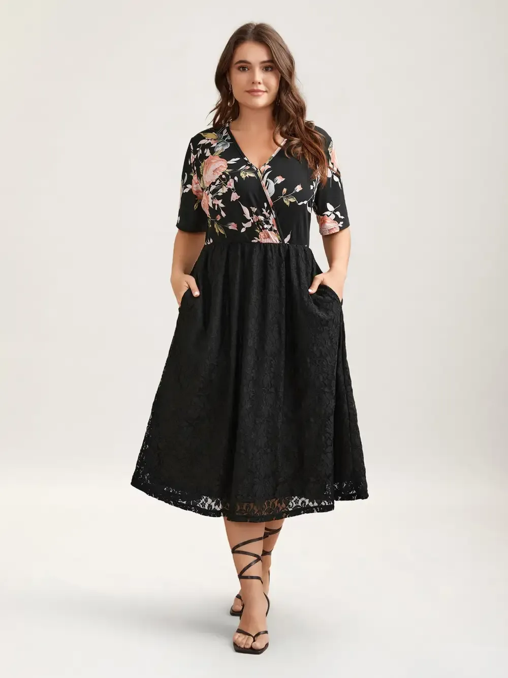 Floral Panel Surplice Pockets Midi Dress