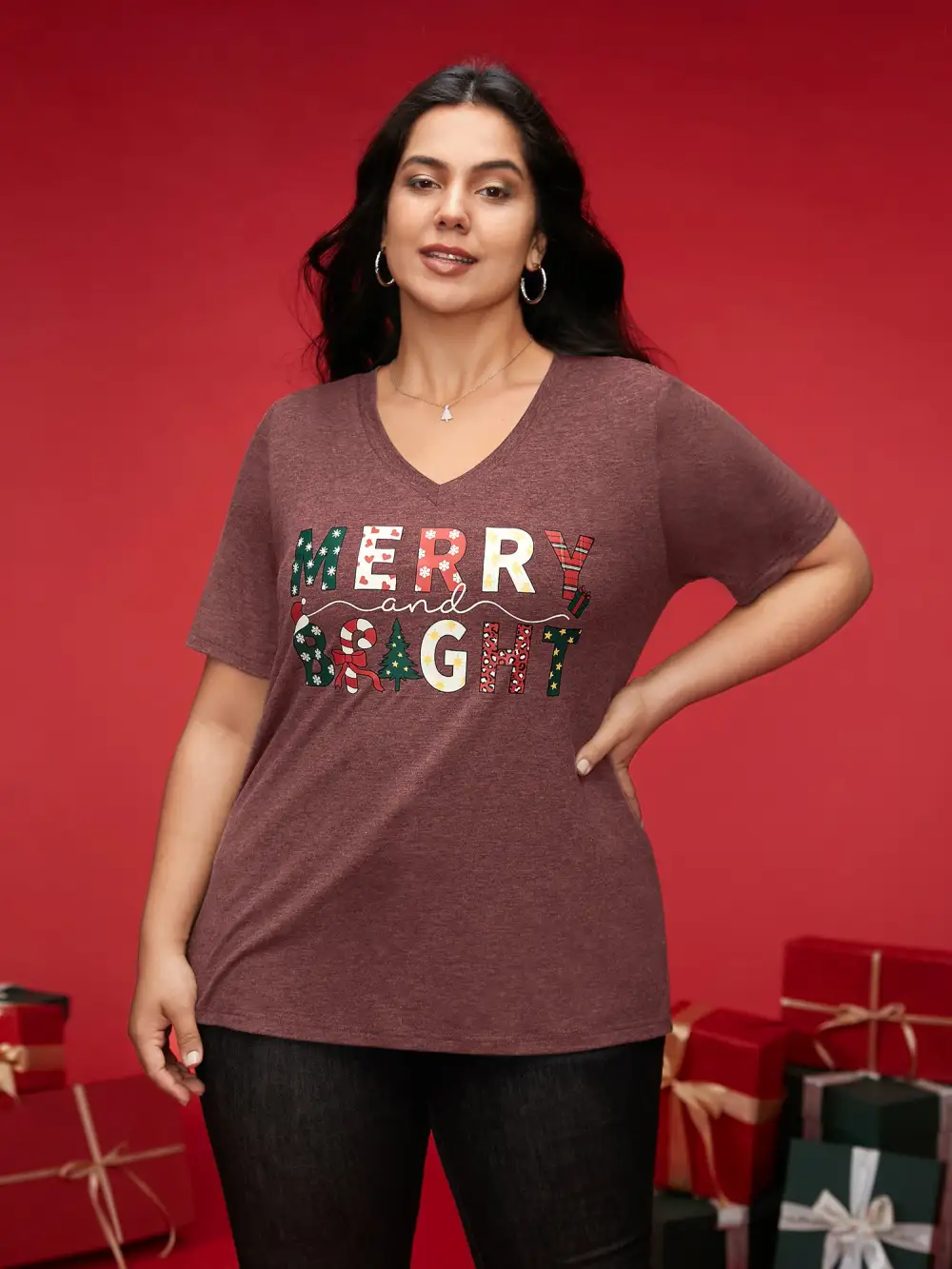 Merry & Bright Slogan Slim-Fit Tee