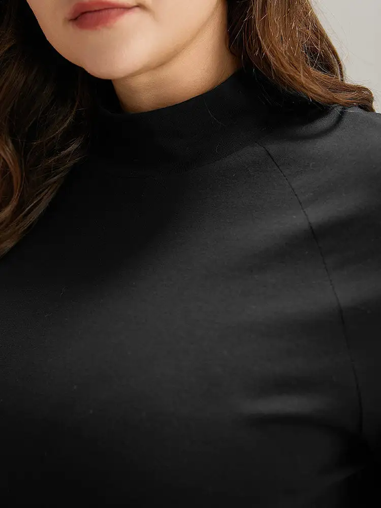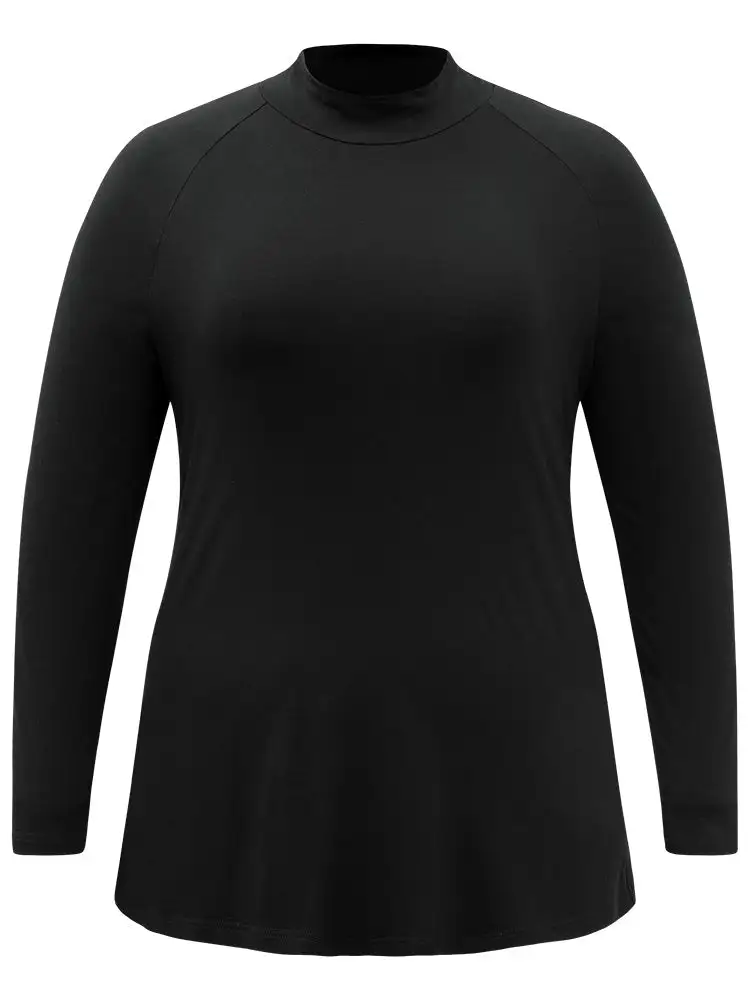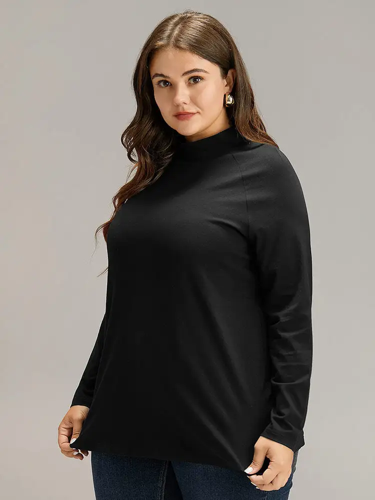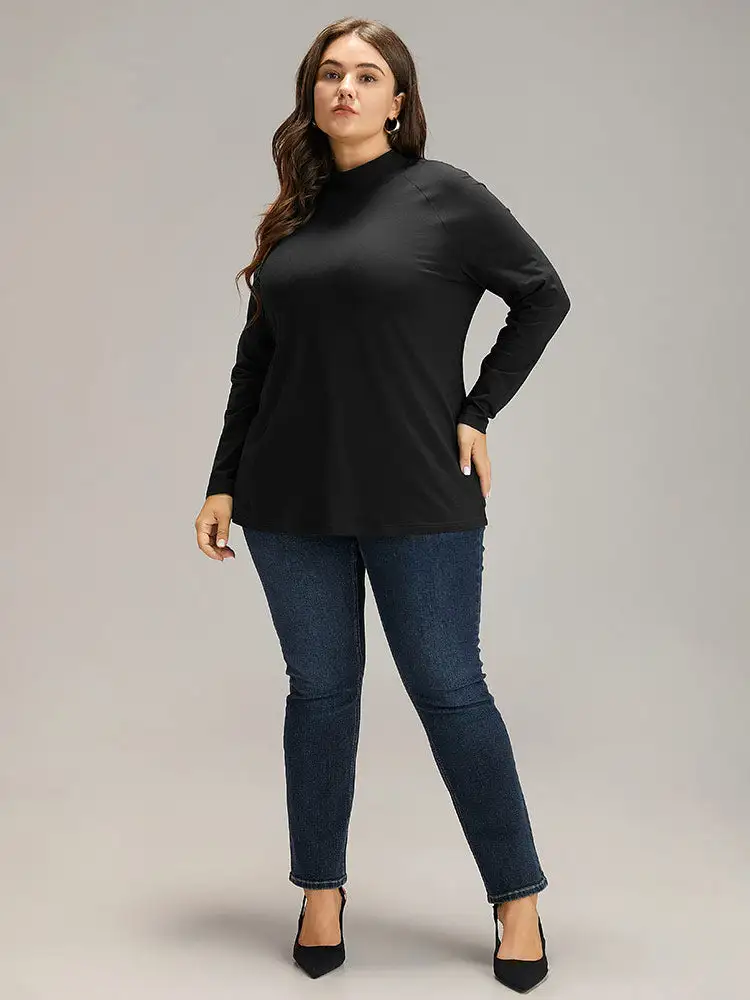Cotton Mock Neck Raglan Sleeve T-Shirt
