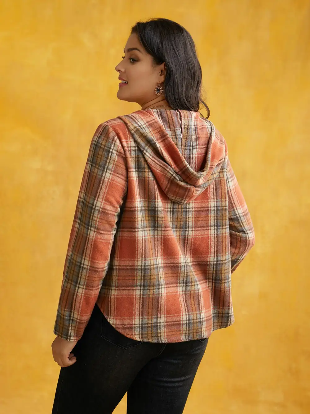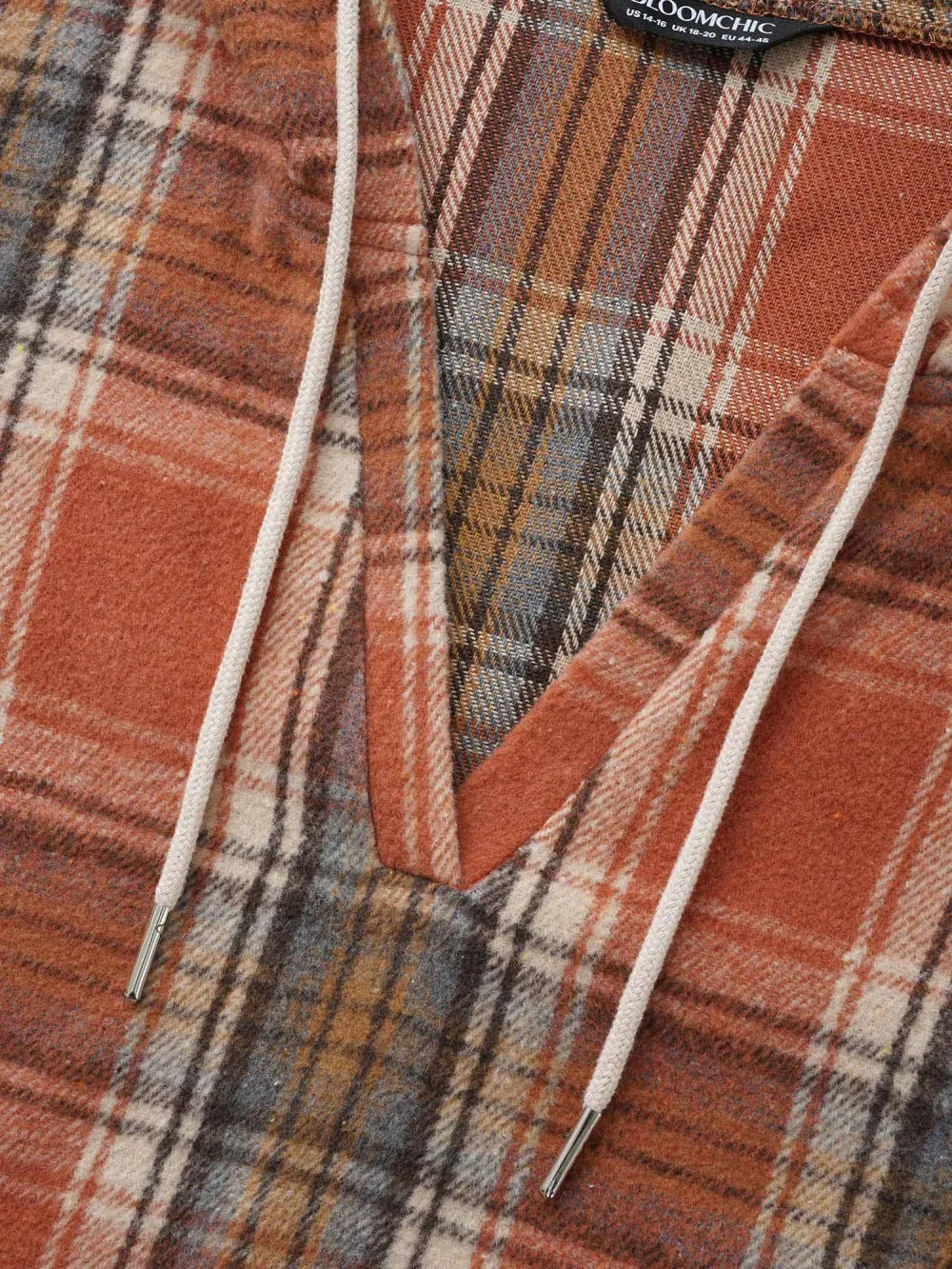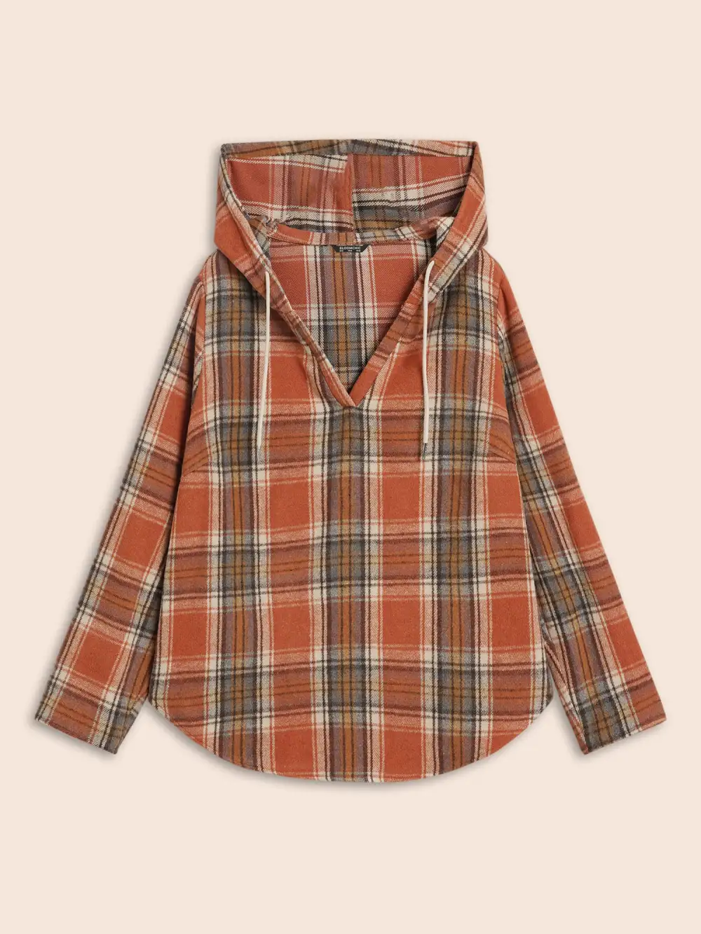 Brushed Fabric Plaid Hooded Sweatshirt