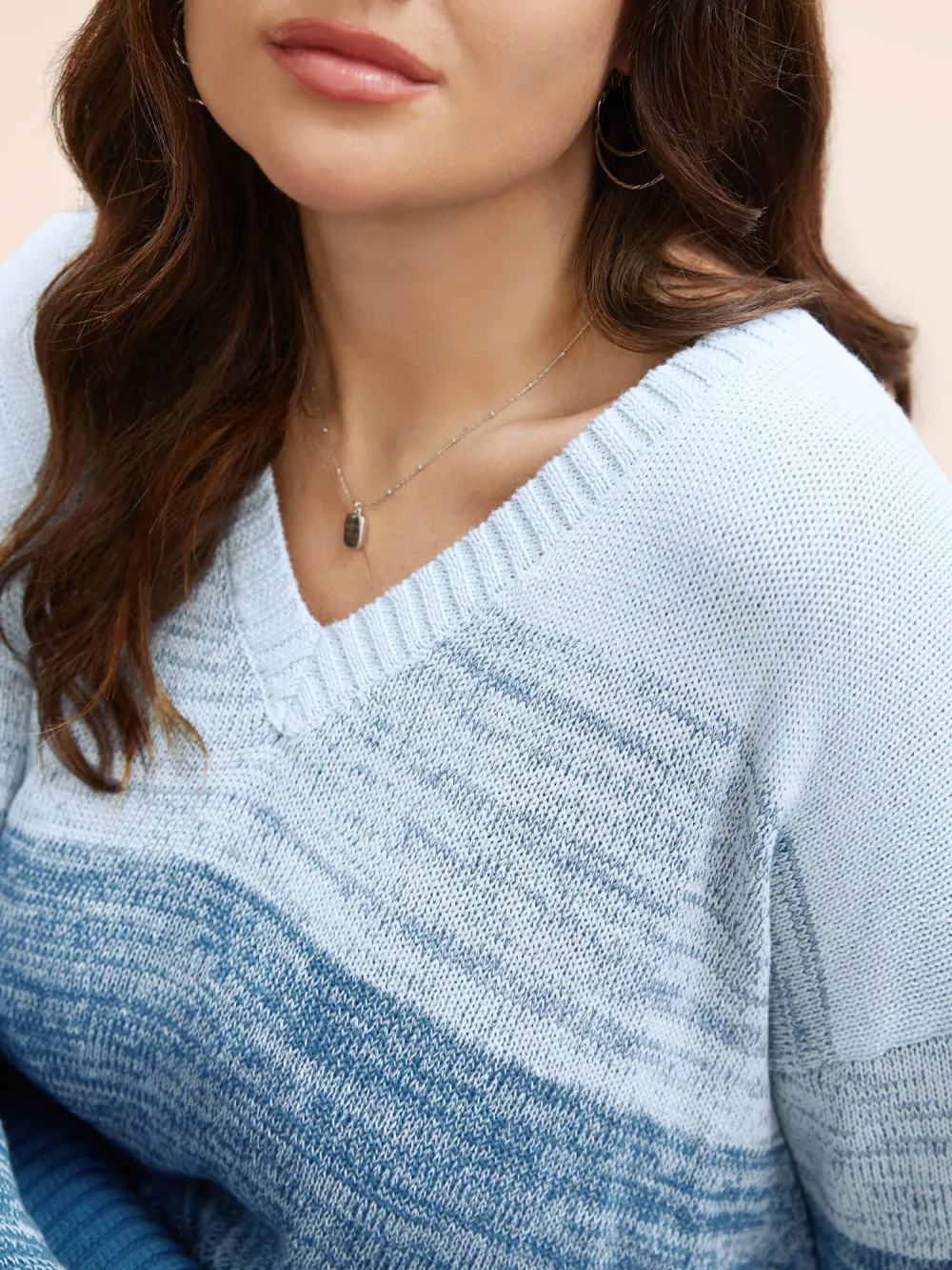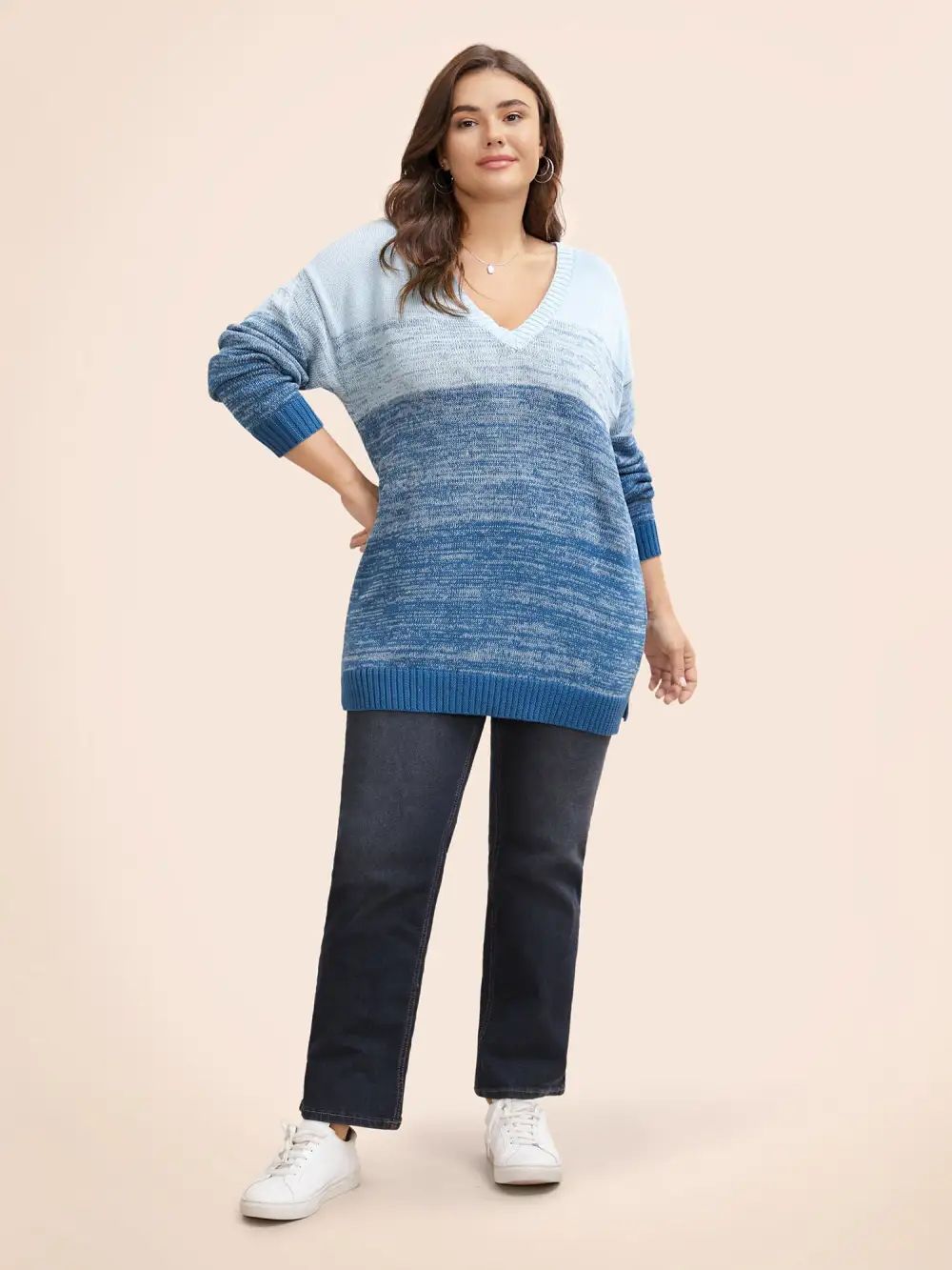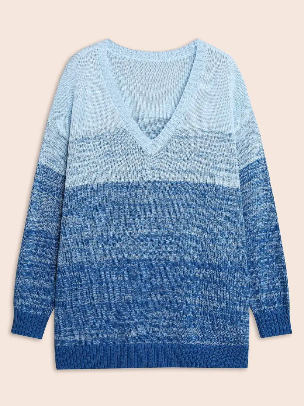 Cotton V Neck Ombre Split Hem Pullover