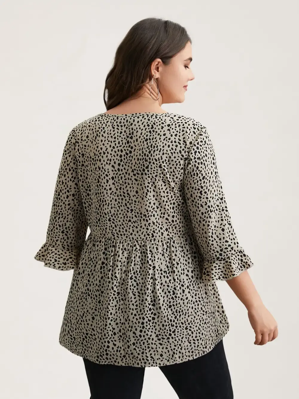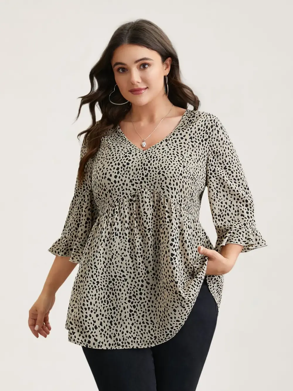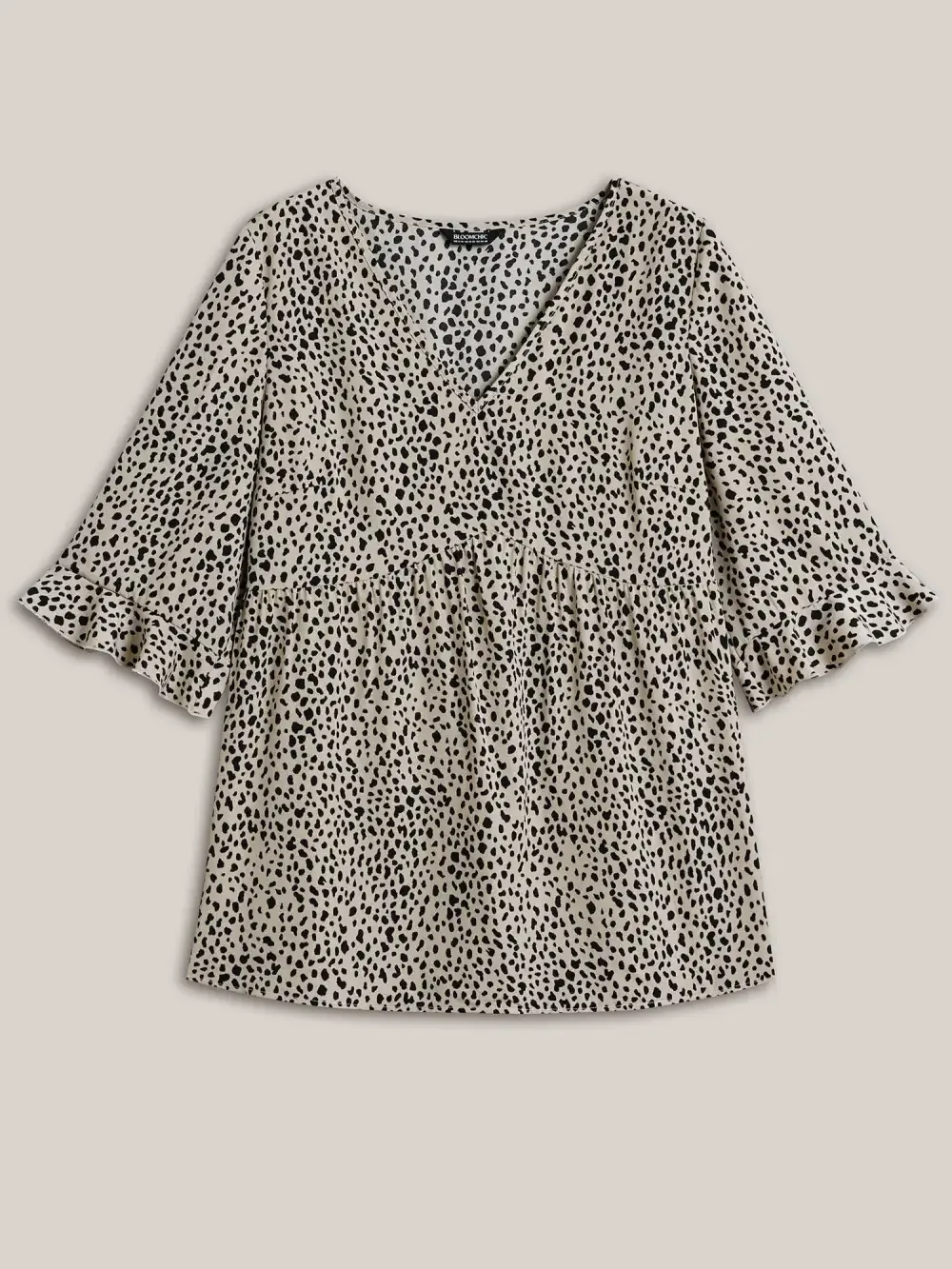 Leopard Print Ruffled Detail V-Neck Blouse