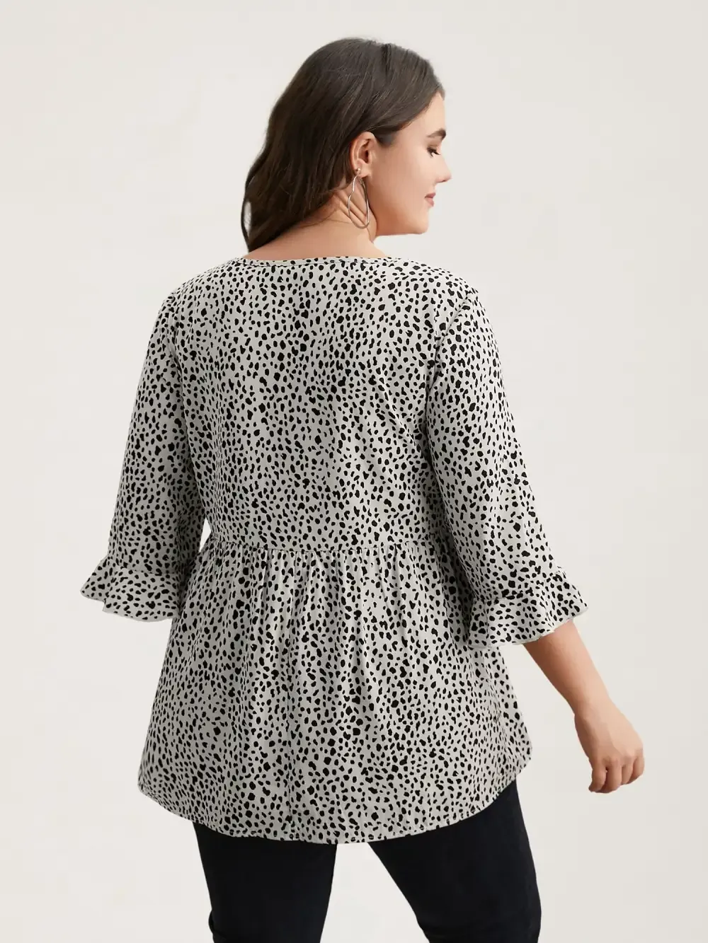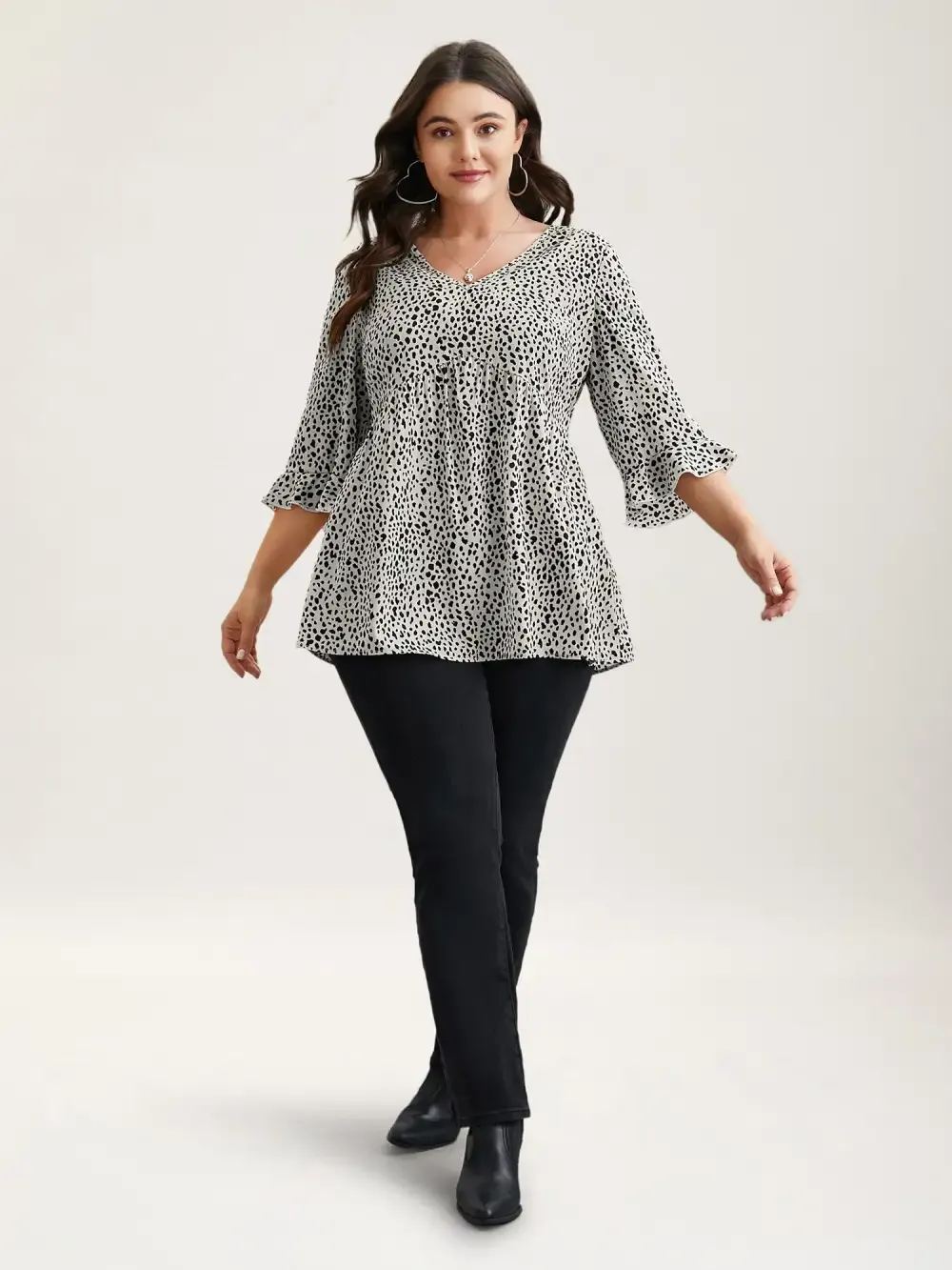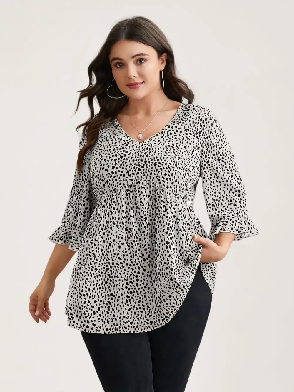 Leopard Print Ruffled Detail V-Neck Blouse
