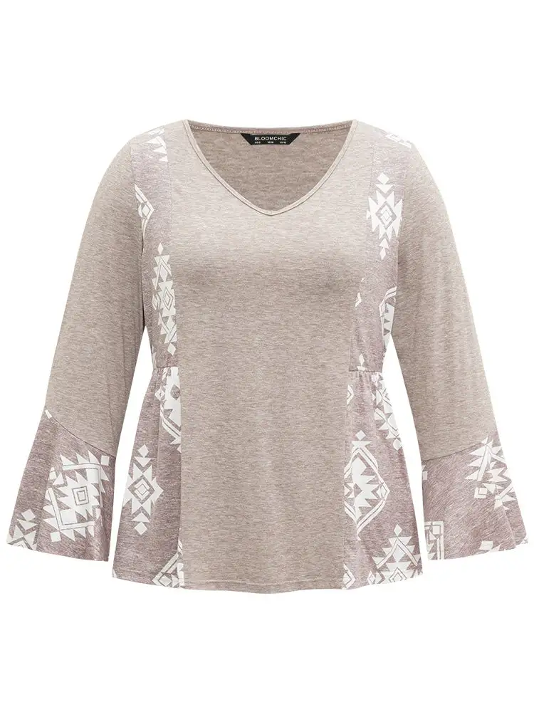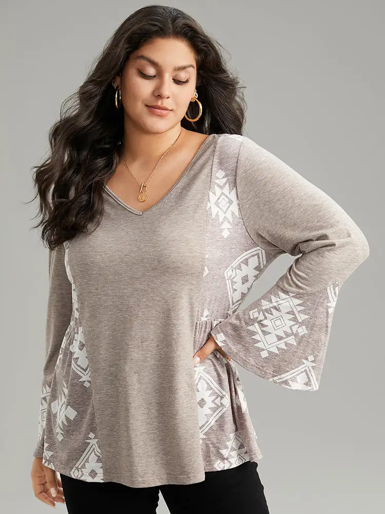 Floral Print Bell Sleeve V Neck T-Shirt