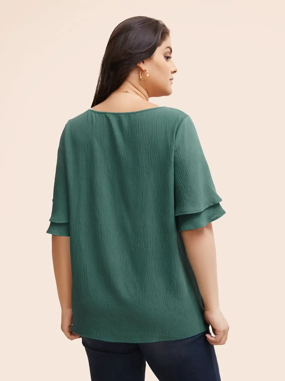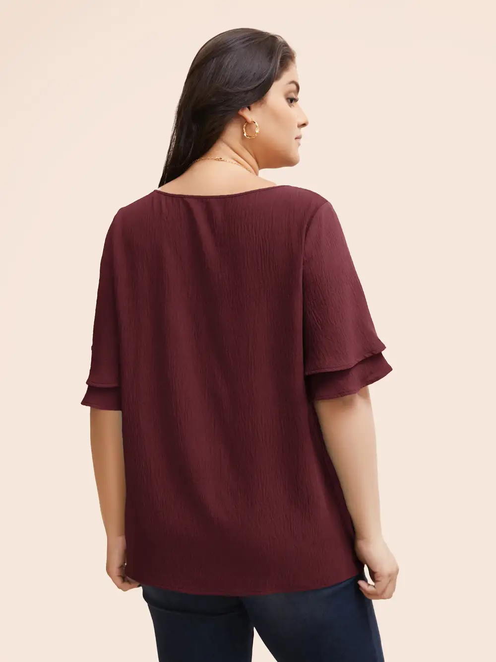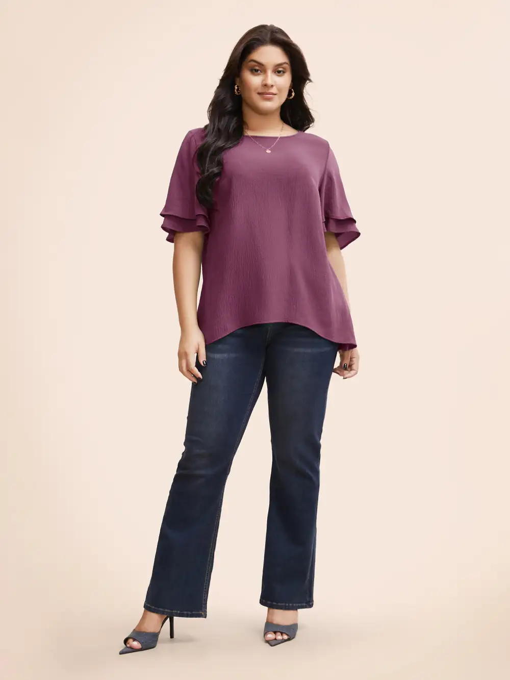 Solid Tiered Ruffles Split Hem Blouse
