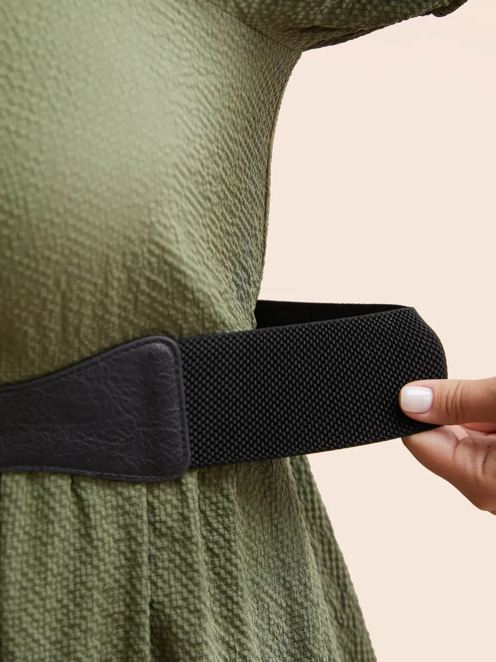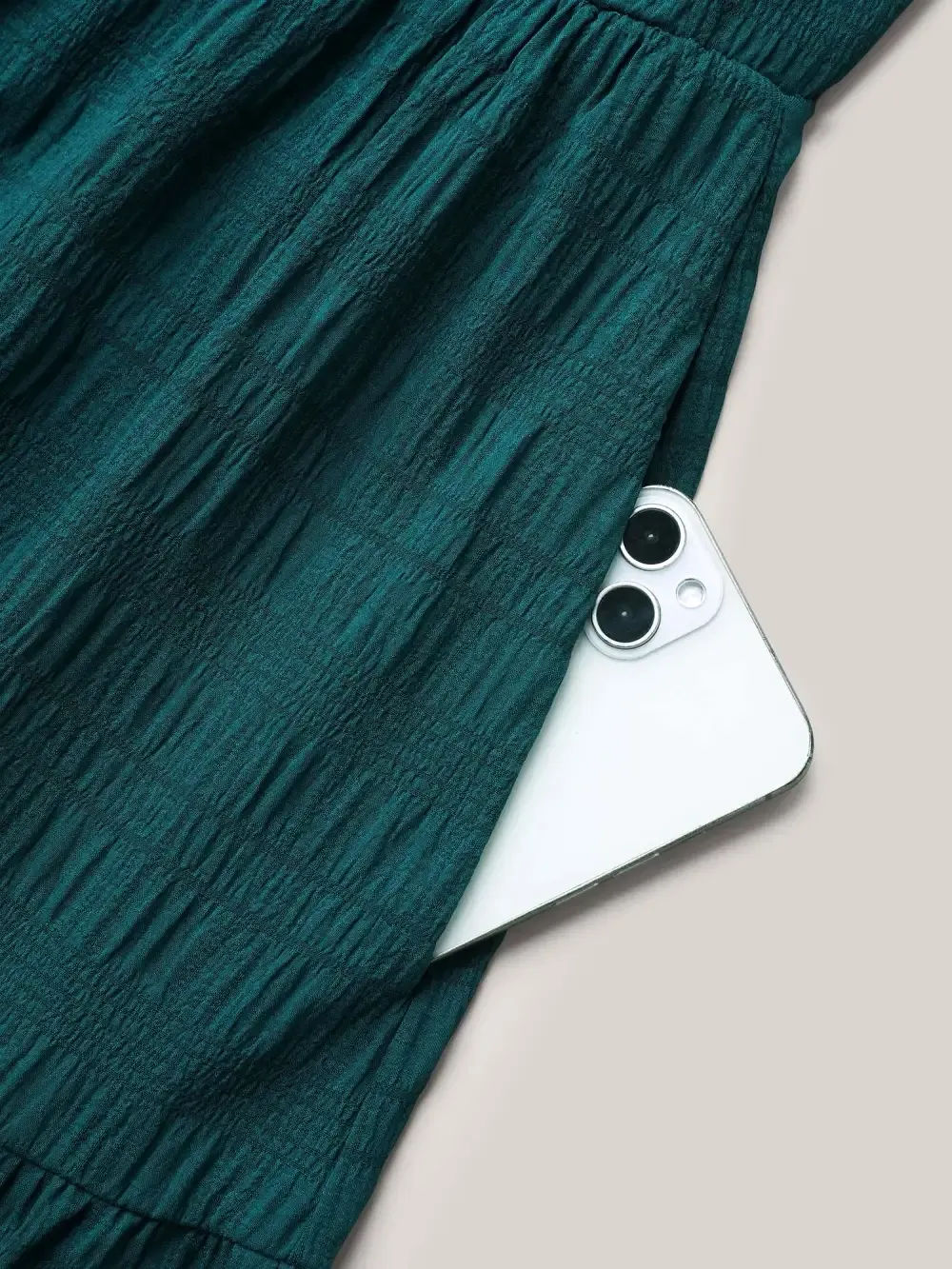 Stretchy Waist Frill Trim Pockets Midi Dress