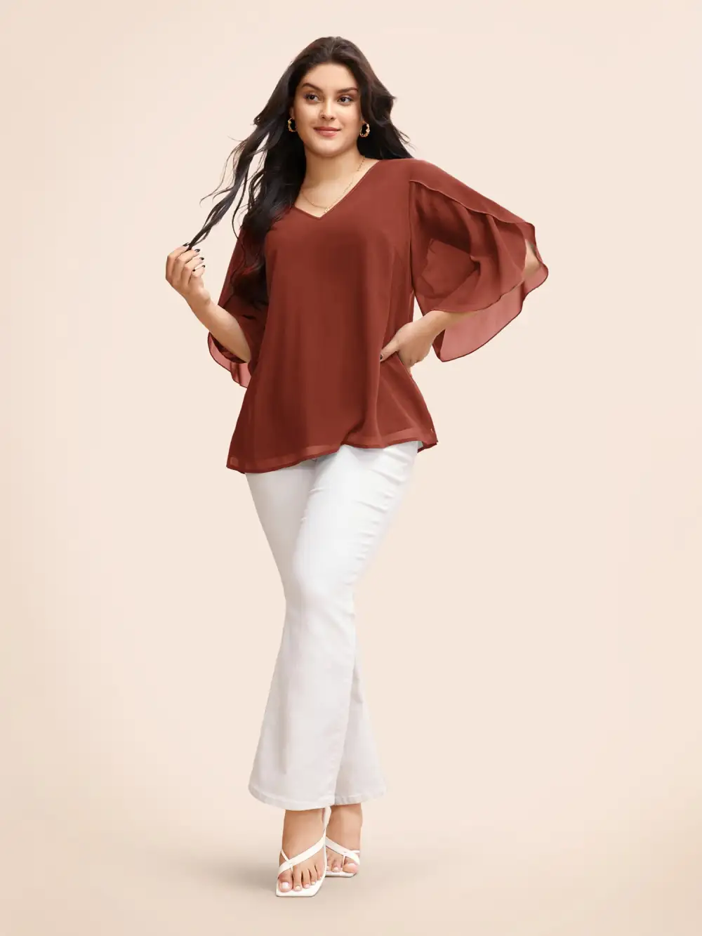 Chiffon Gathered Petal Sleeve Blouse