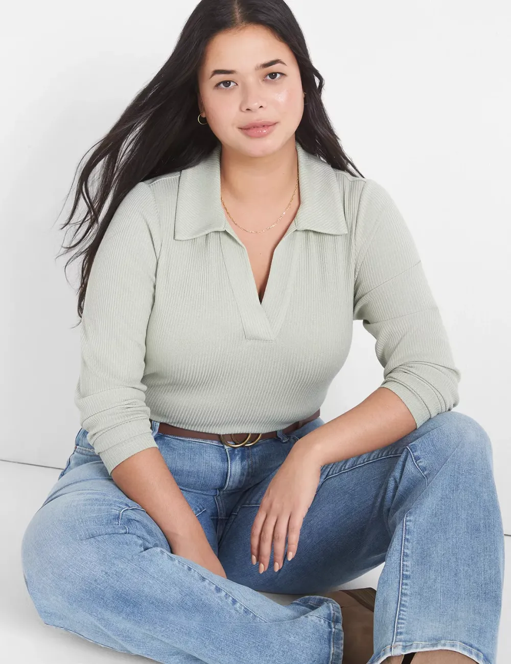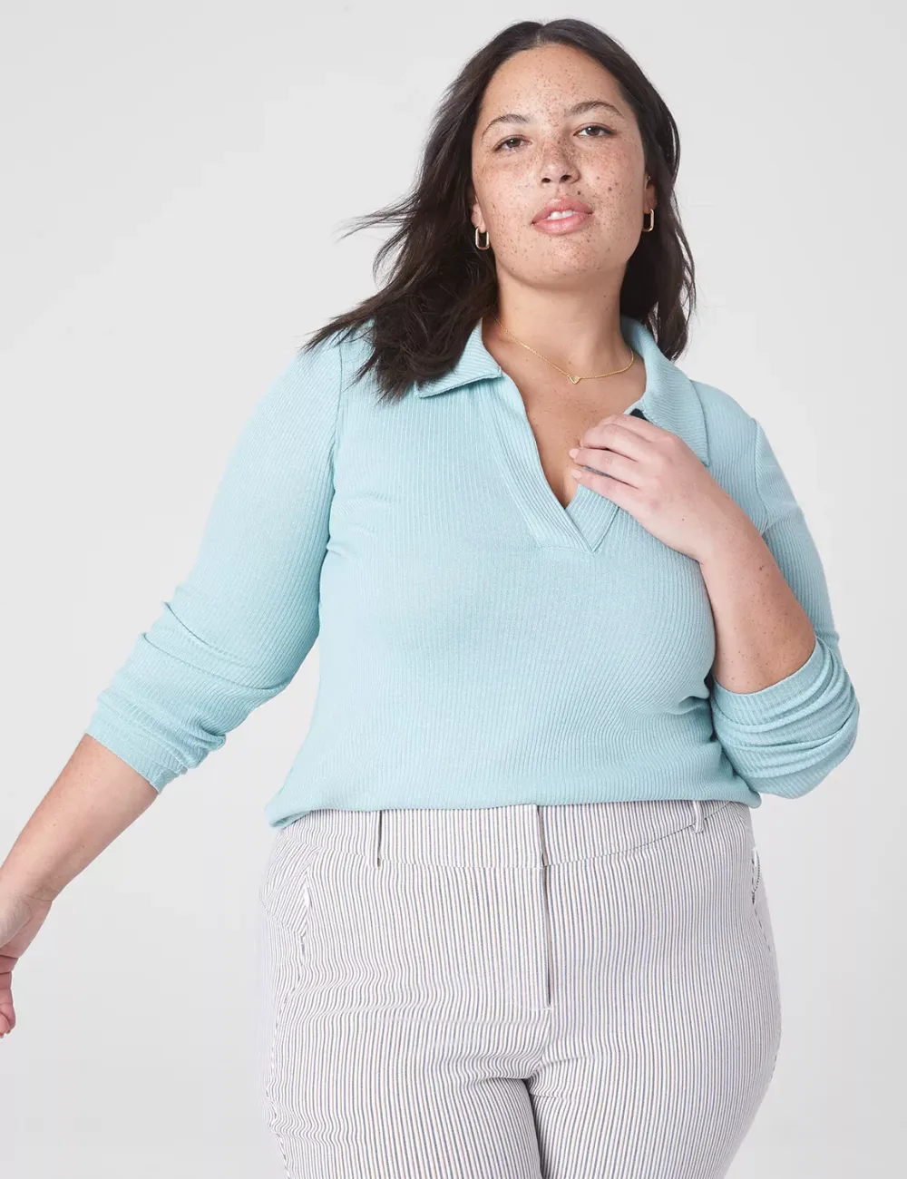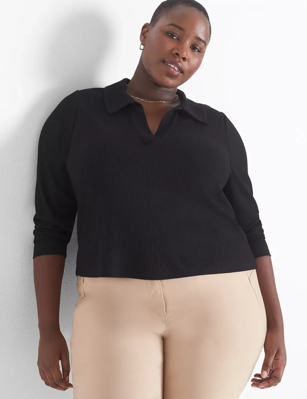 Classic Crop V-Neck Polo Rib Tee