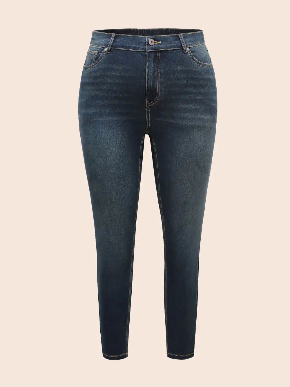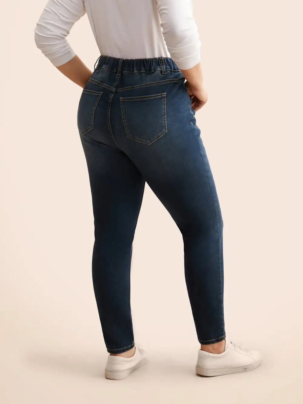 Plain Waffle Knit Scoop Neck Plicated Detail T-Shirt