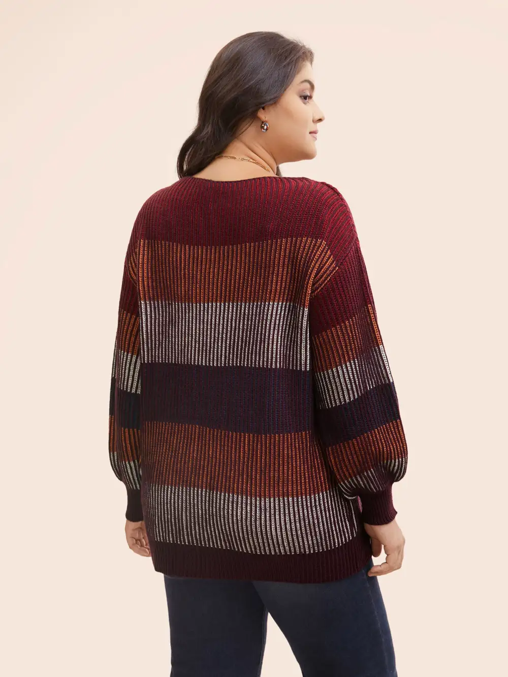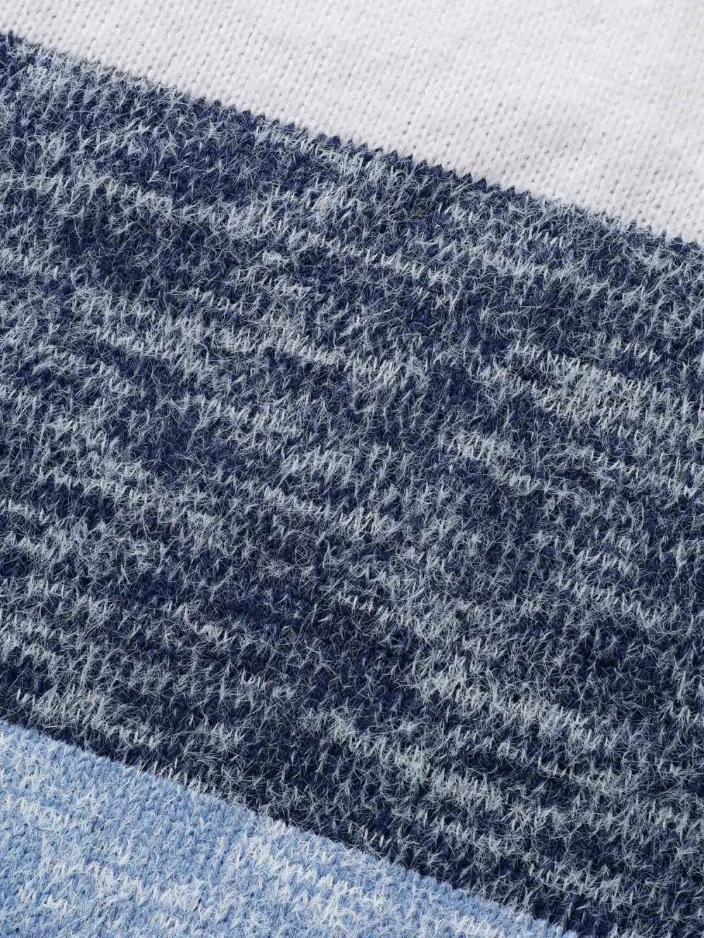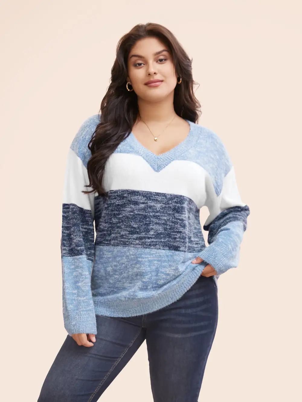 Colorblock Contrast Super Soft Plush Knit V Neck Pullover