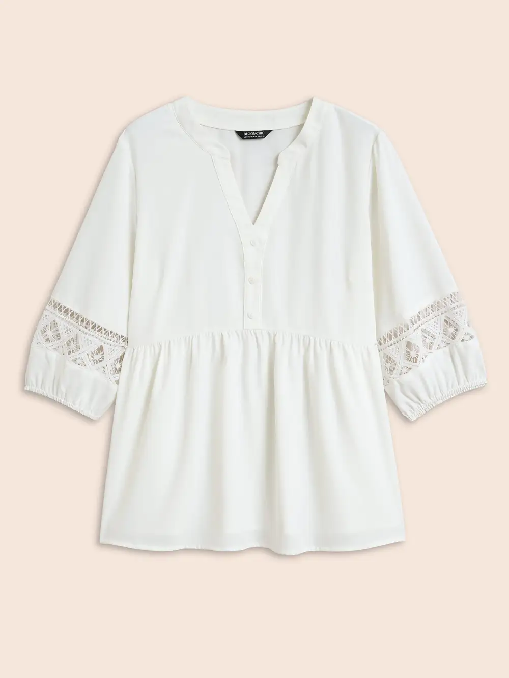 Notched Patchwork Cut Out Lantern Sleeve Blouse