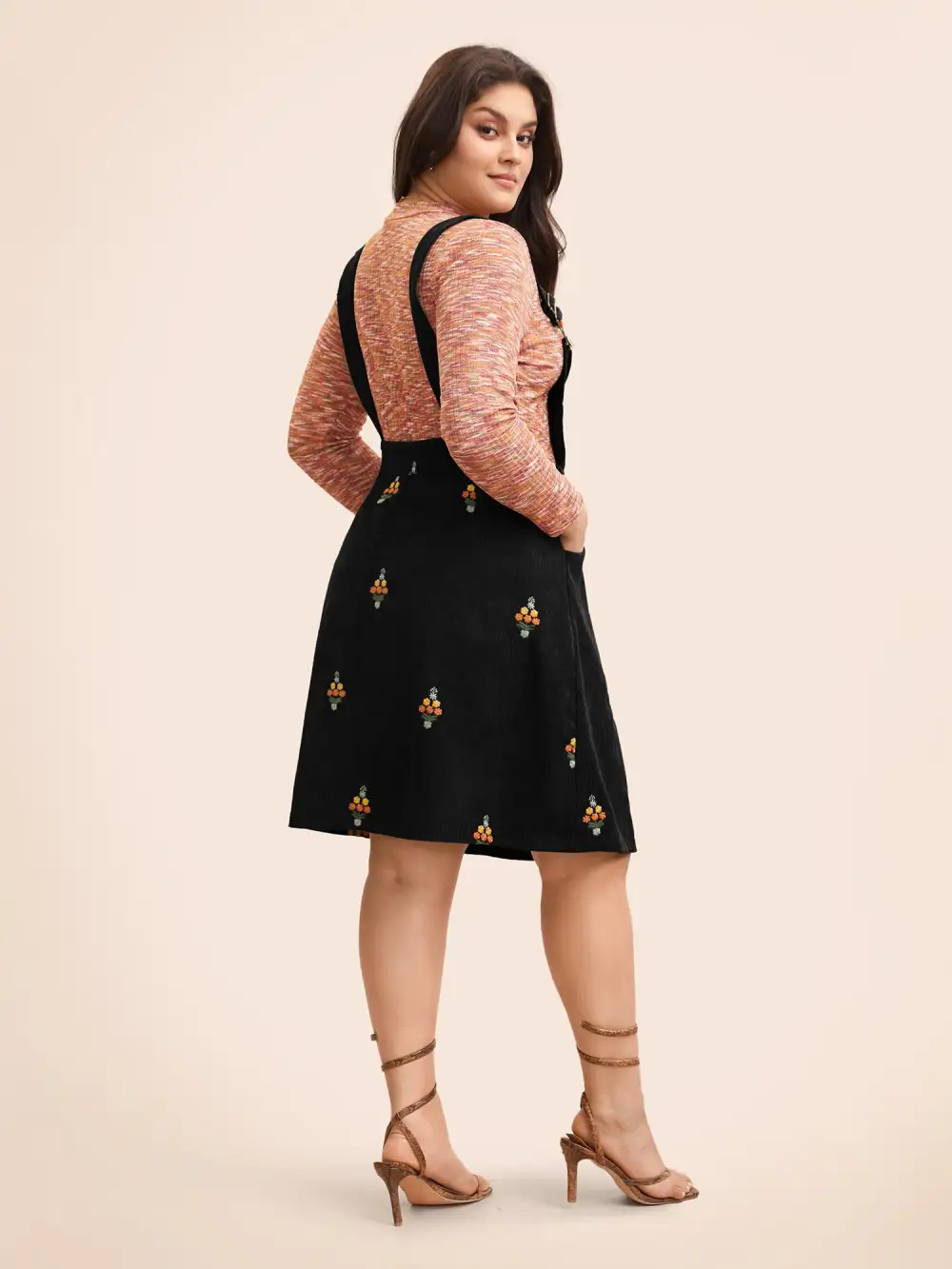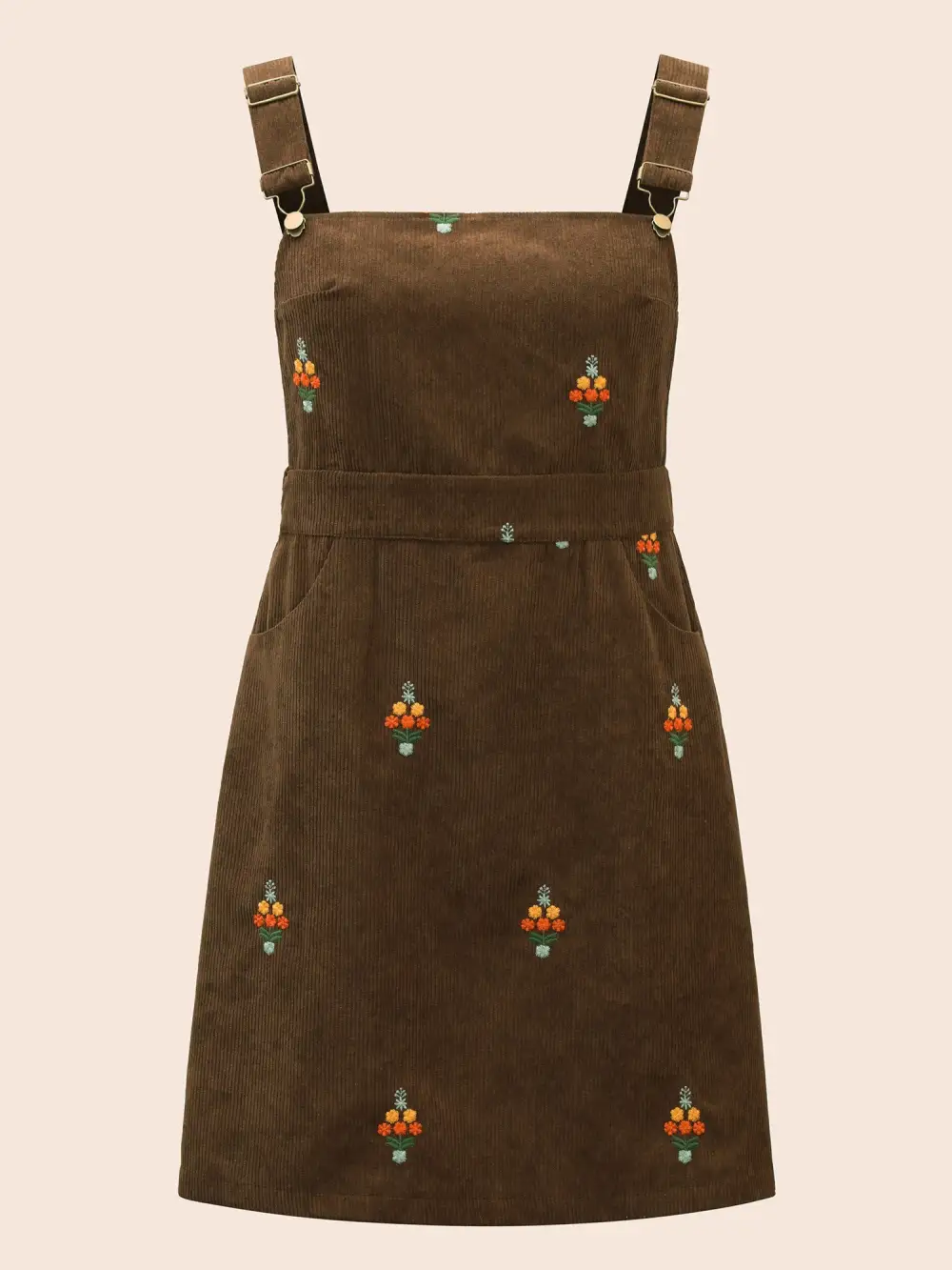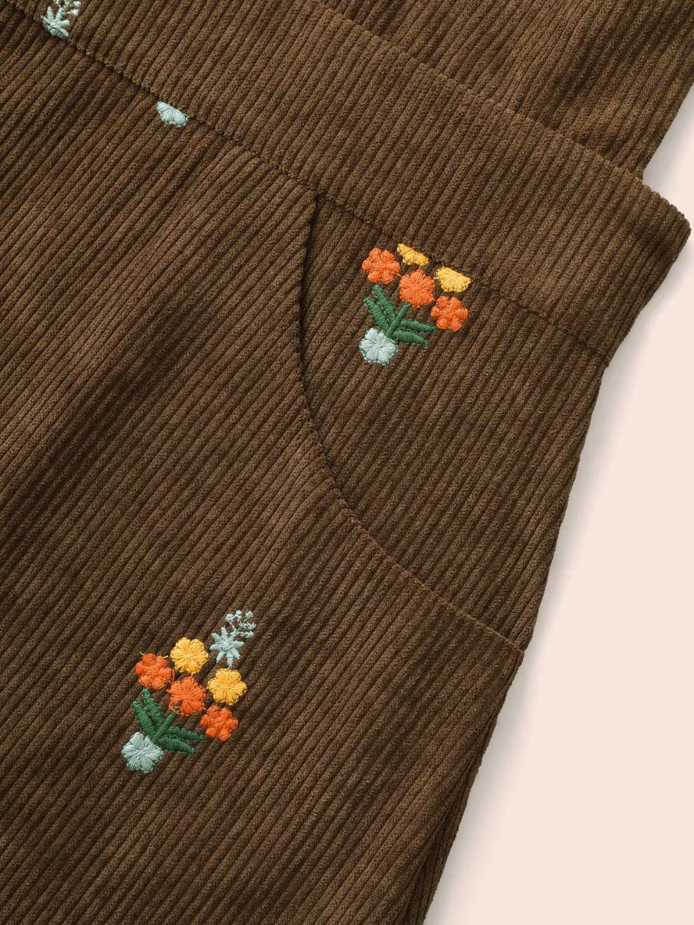 Floral Embroidered Corduroy Overall Dress