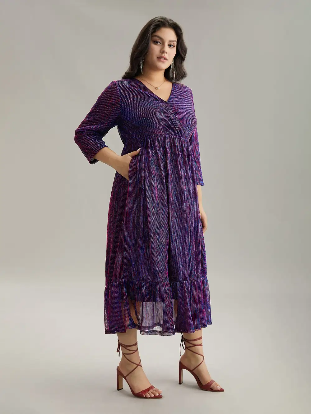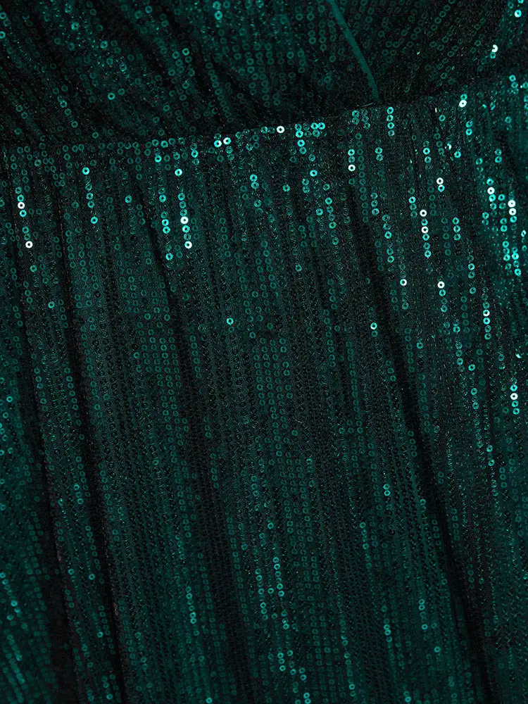Solid Pocket Lantern Sleeve Wrap Sequin Dress