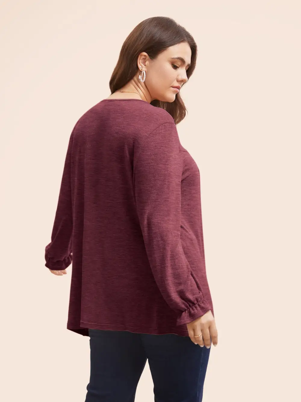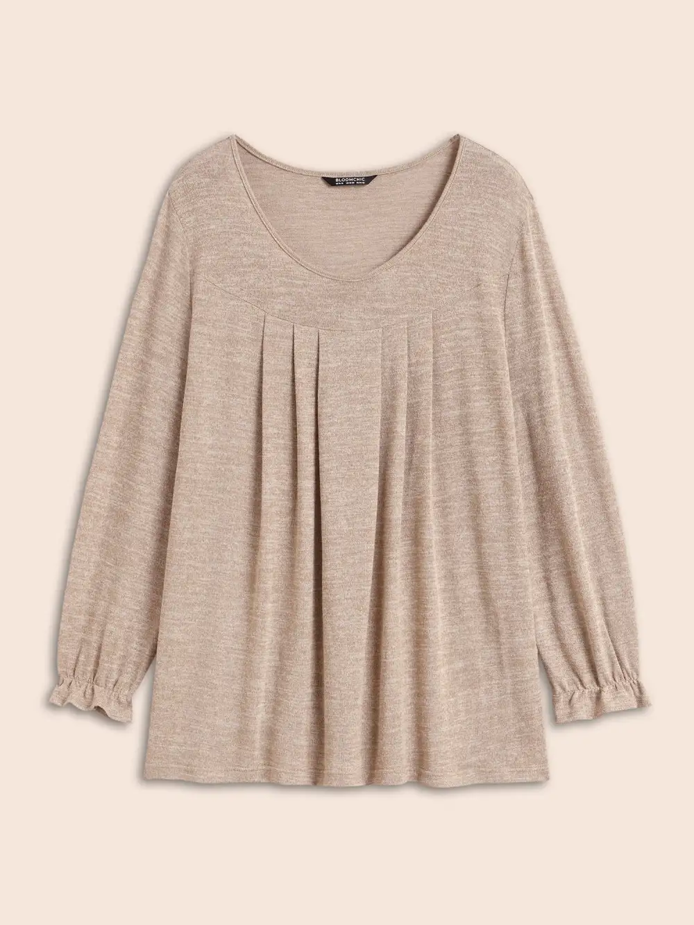 Round Neck Heather Pleated T-Shirt