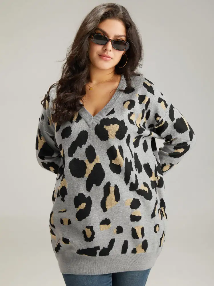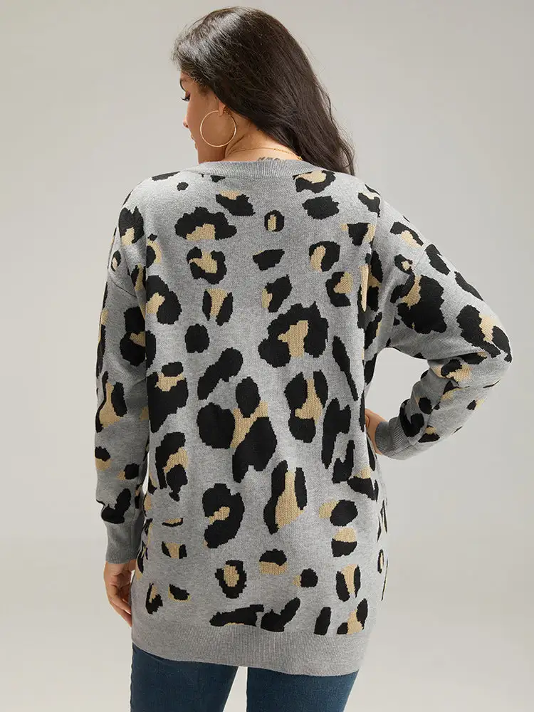 Anti-Pilling Leopard Elastic Cuffs Pullover