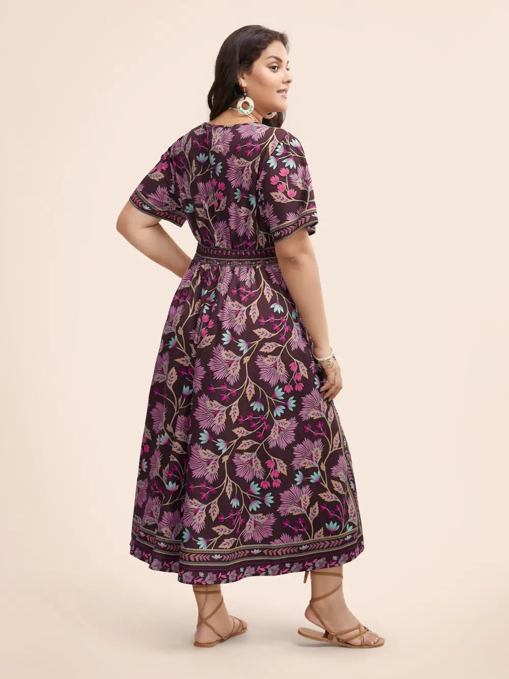 Boho Print Shirred Pocket Midi Dress
