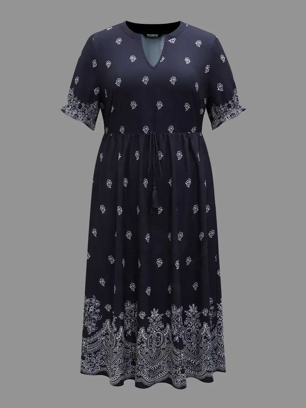 Floral Waist-Tie Notched Collar Midi Dress