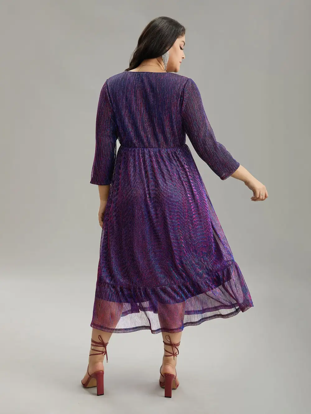 Luxe Mesh Pleated Elastic Waist Wrap Dress