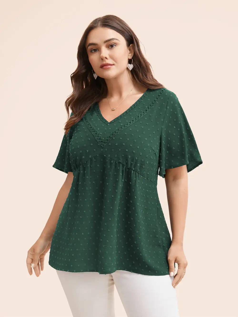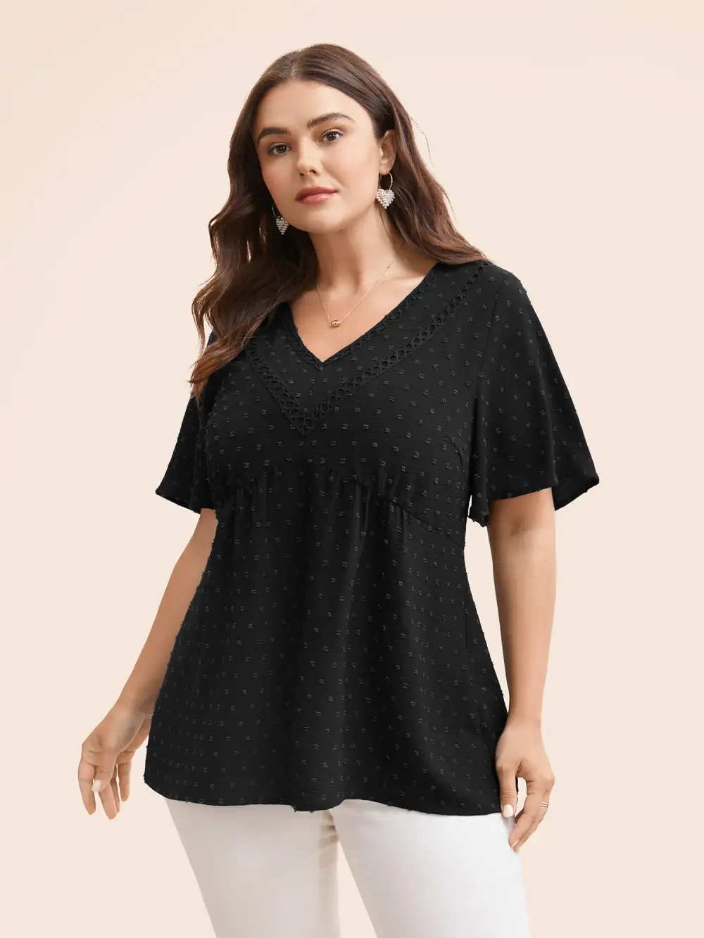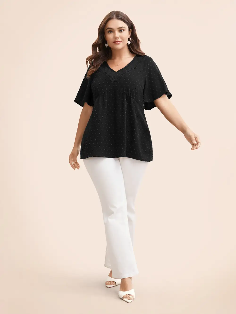 Polka Dot Frill Trim V Neck Flutter Blouse