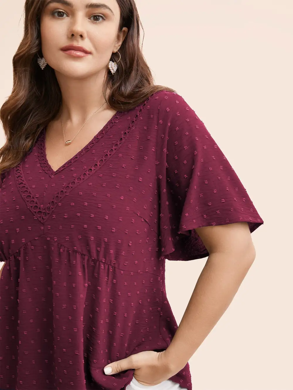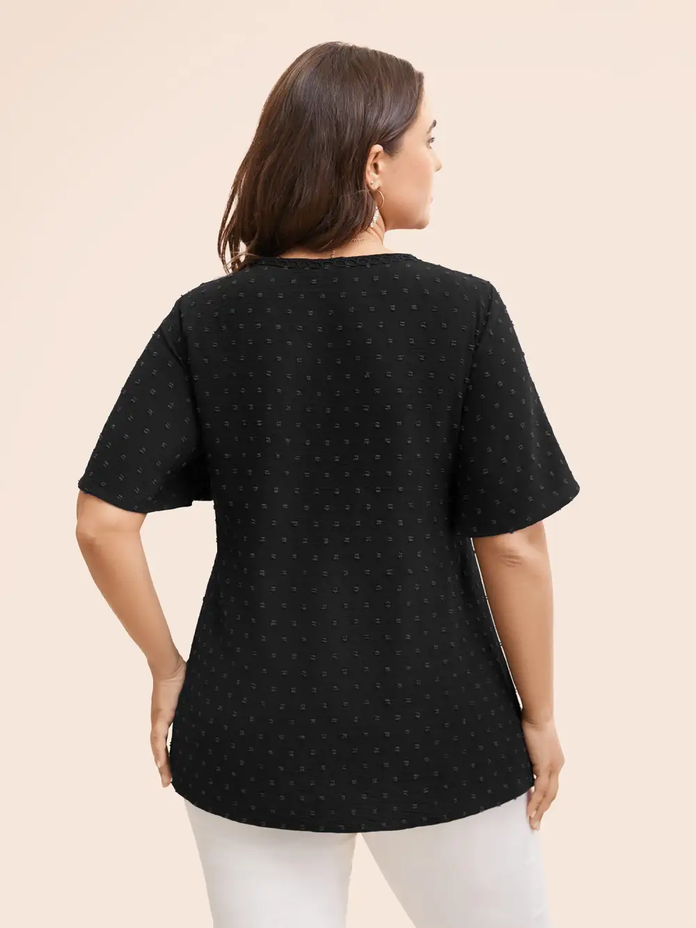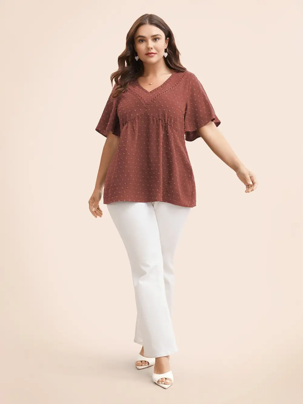 Polka Dot Frill Trim V Neck Flutter Blouse