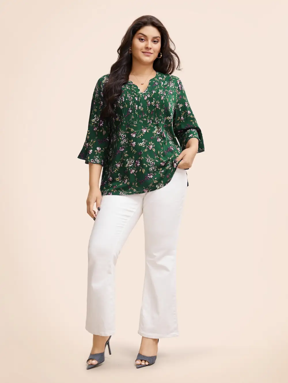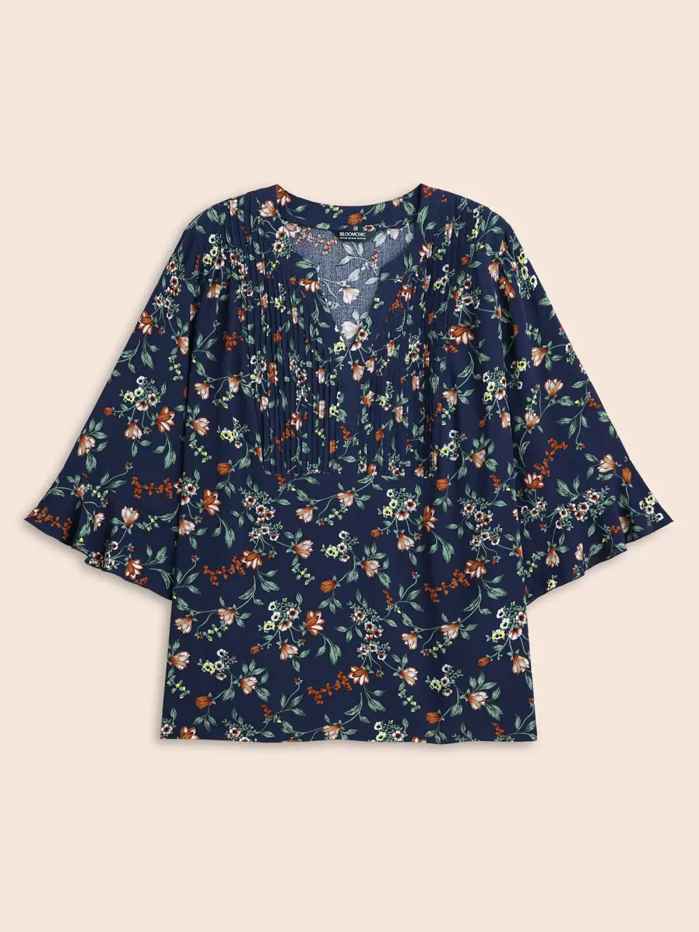 Ditsy Floral Pleated Flutter Sleeve Blouse