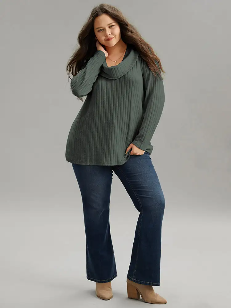 Plain Rib Knit Cowl Neck T-Shirt