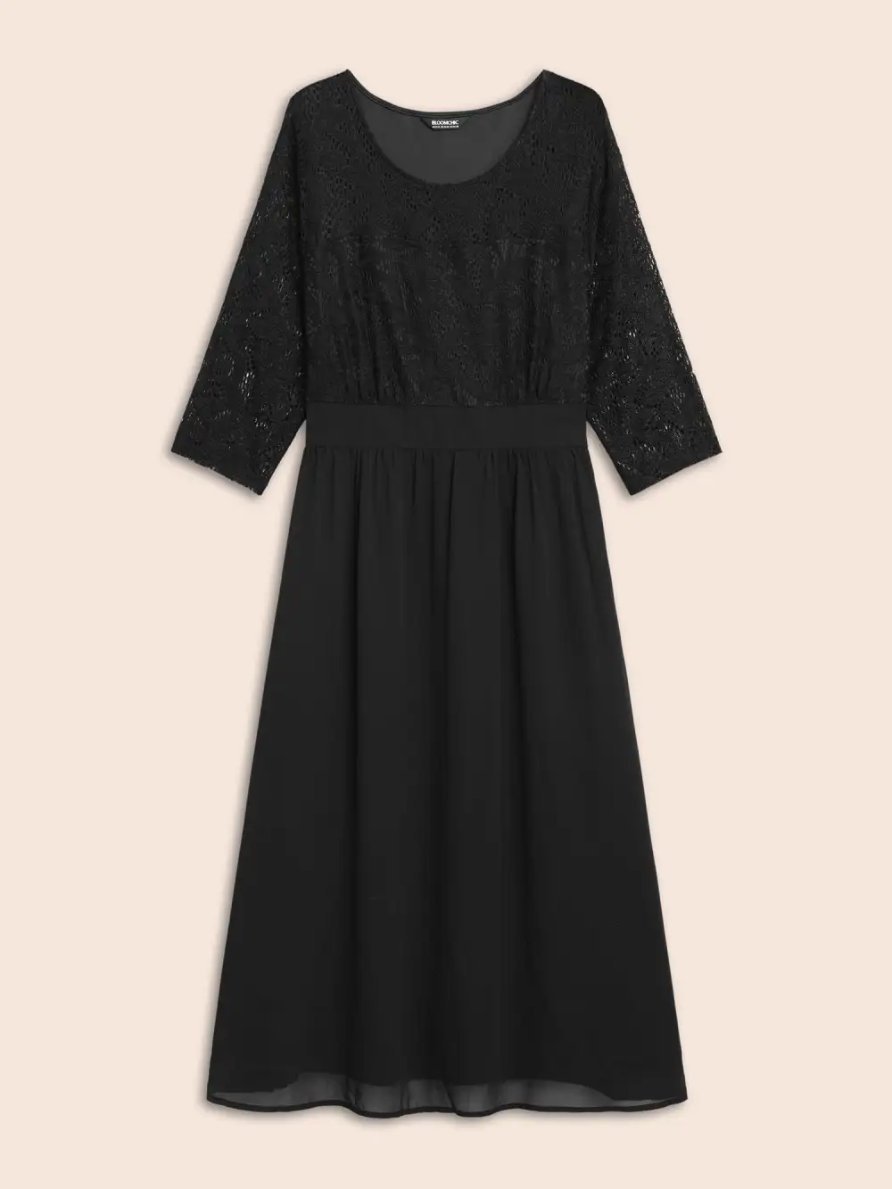 Lace Patchwork Shirred Midi Pocket Dress