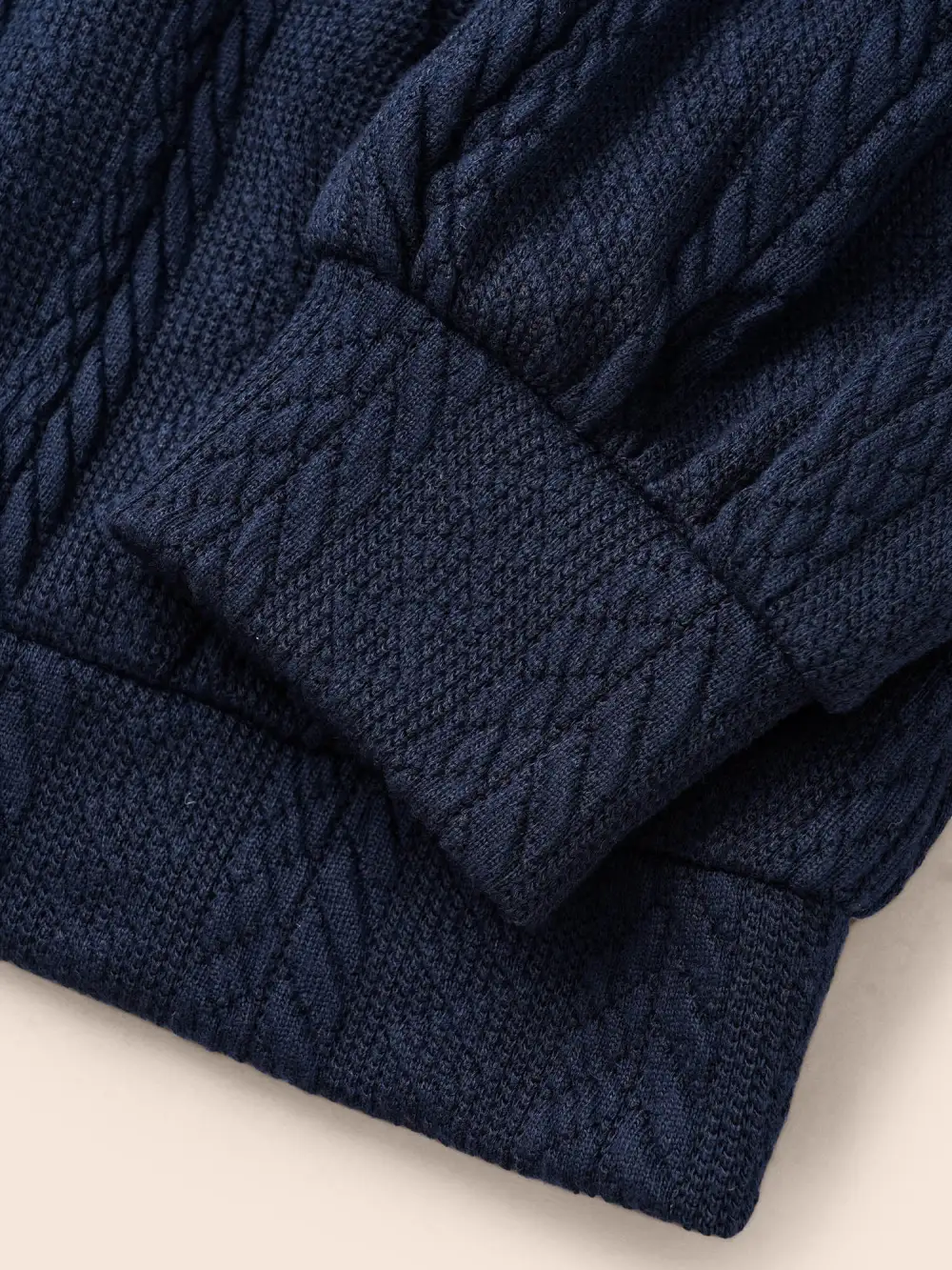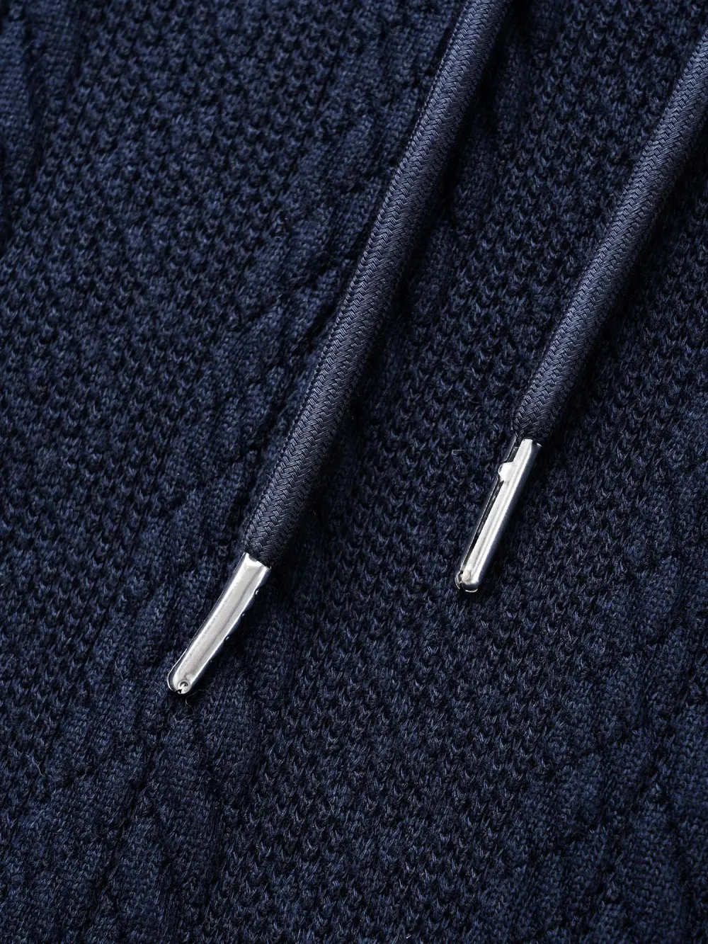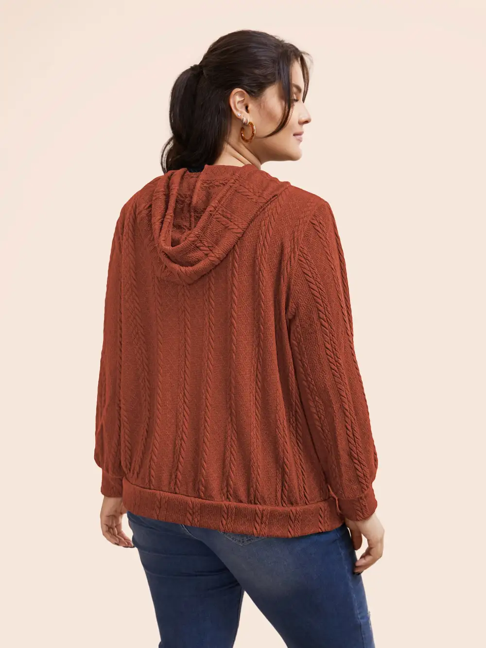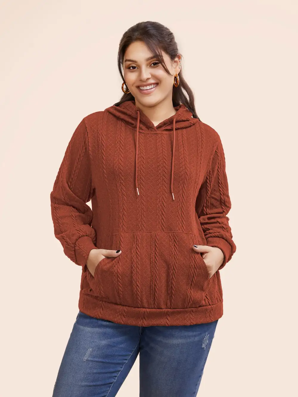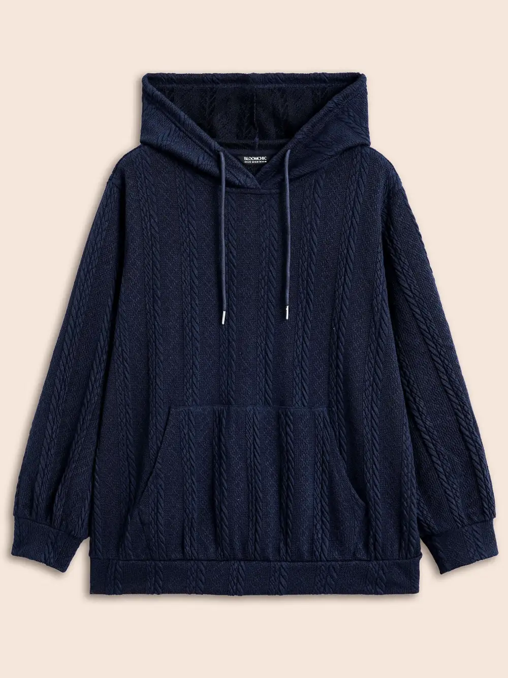 Solid Cable Knit Hooded Drawstring Sweatshirt