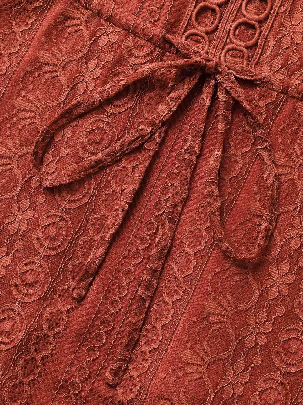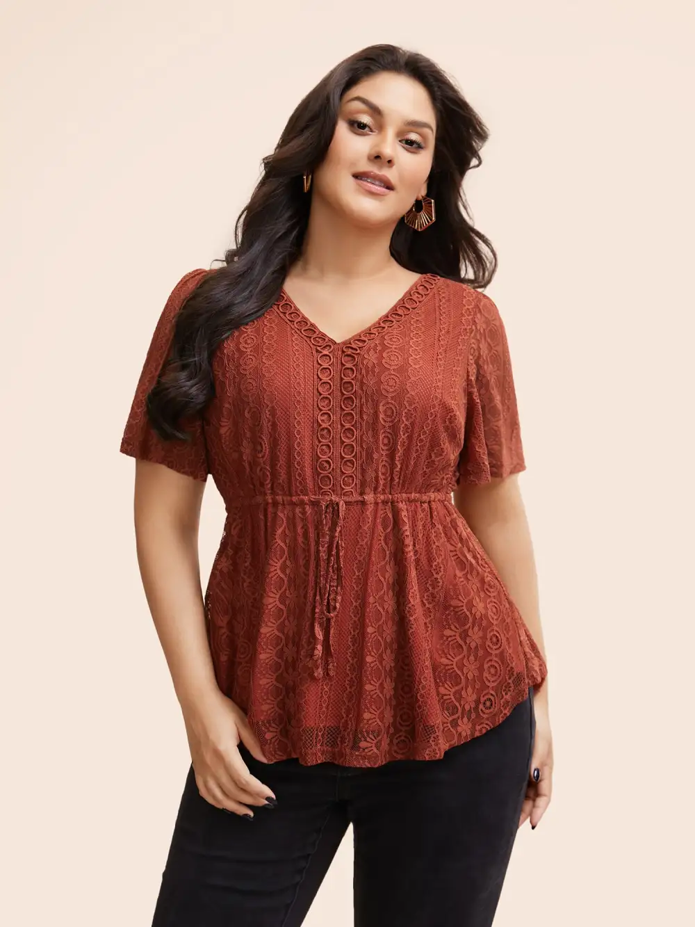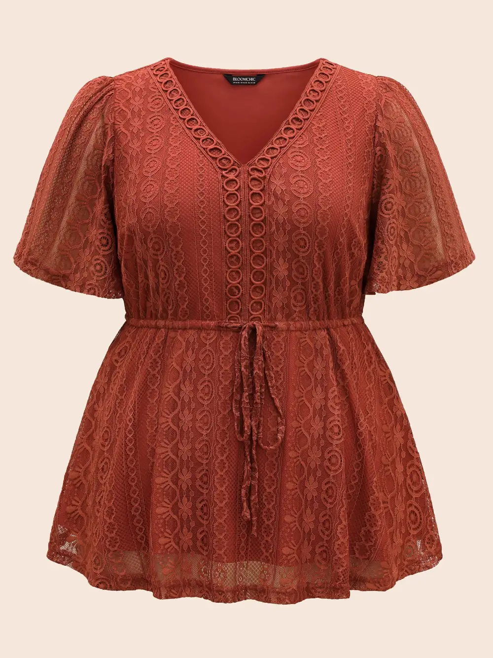 Pearl Beaded Mesh Patchwork Ruffles Blouse