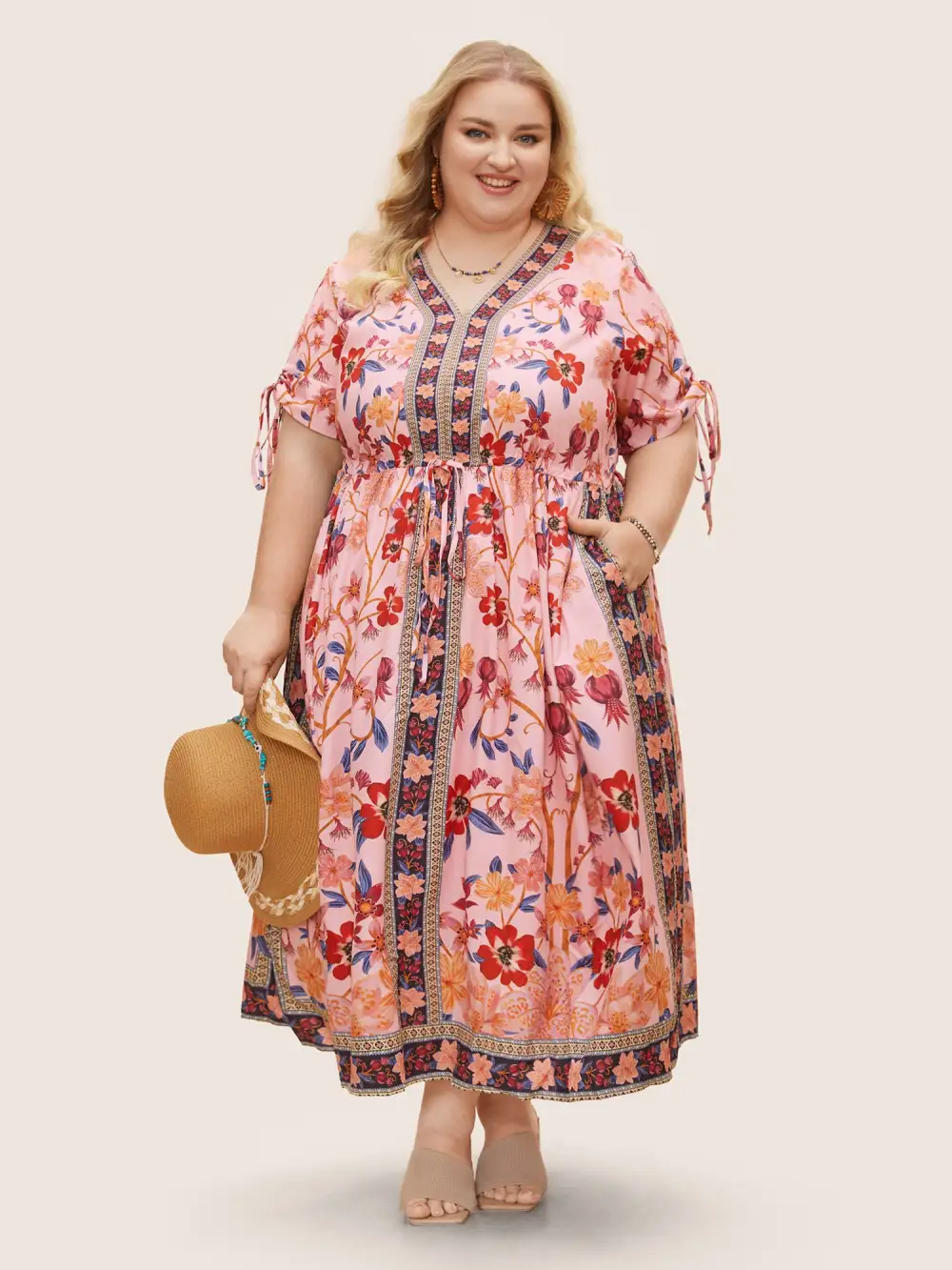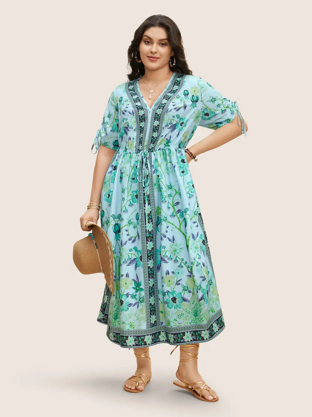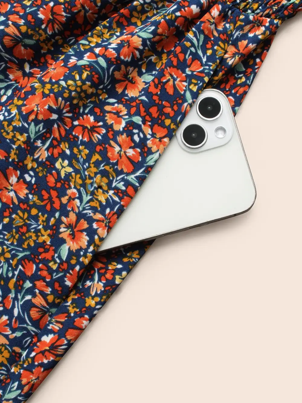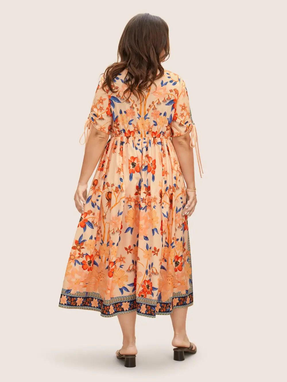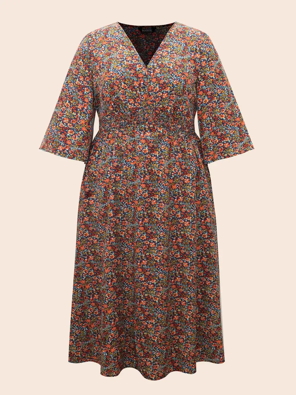 Ditsy Floral Shirred Slit Hem Maxi Dress