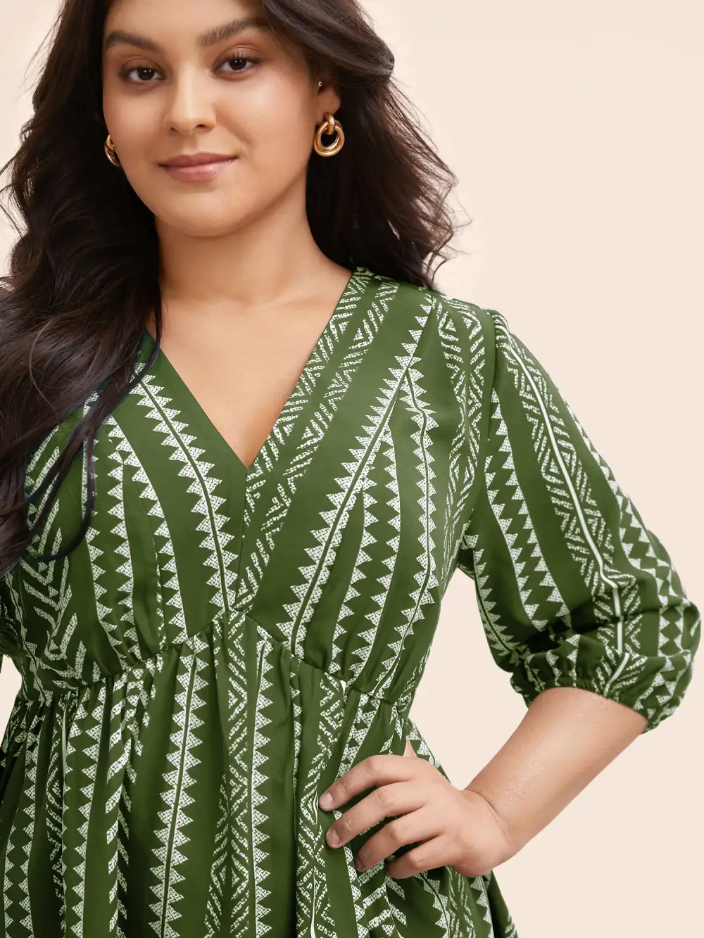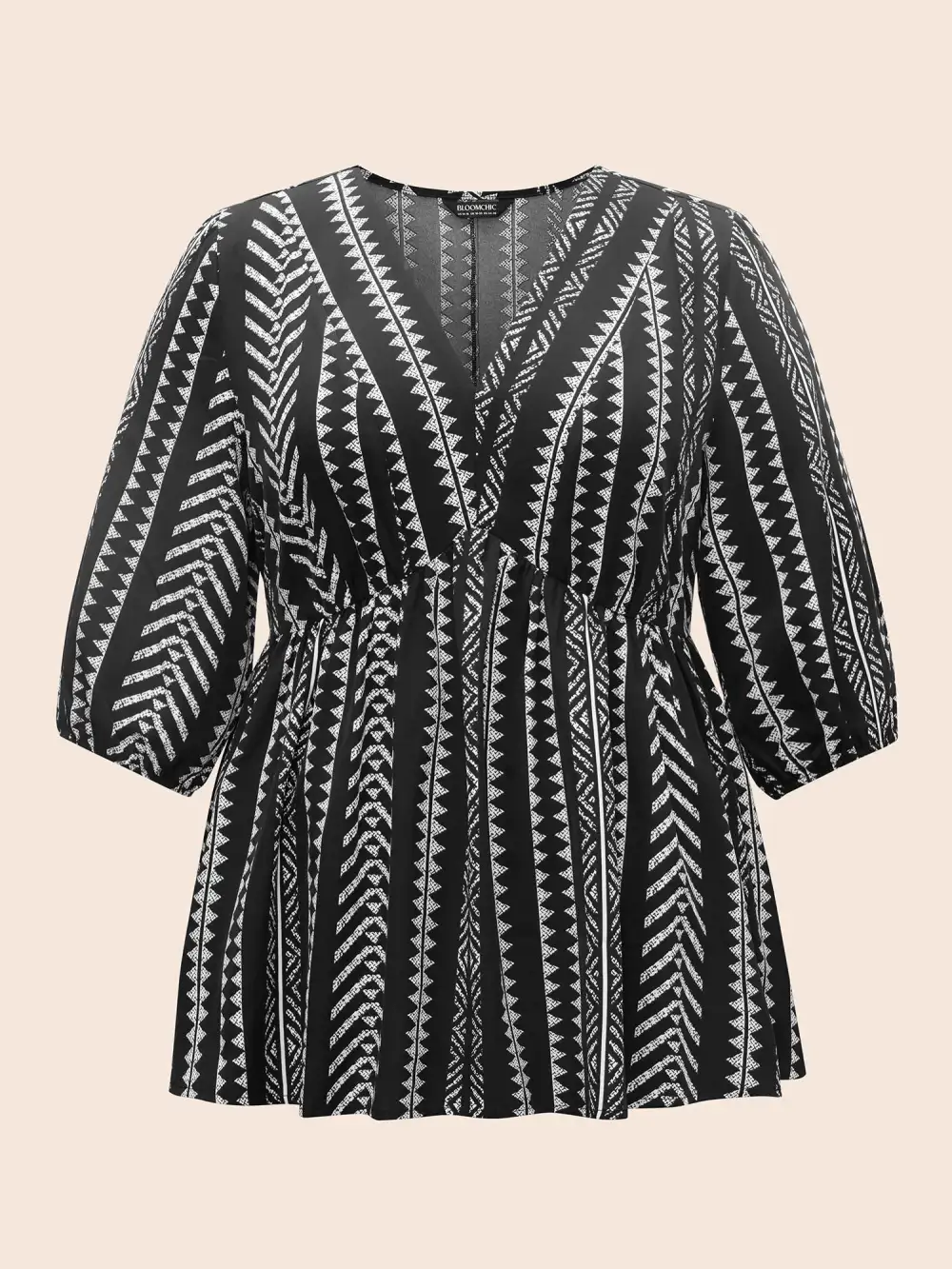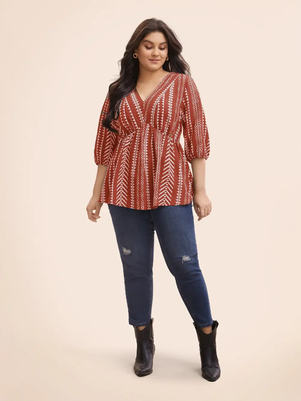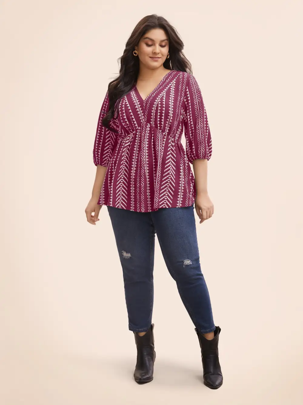 Bandana Geometric Lantern Sleeve Gathered Blouse