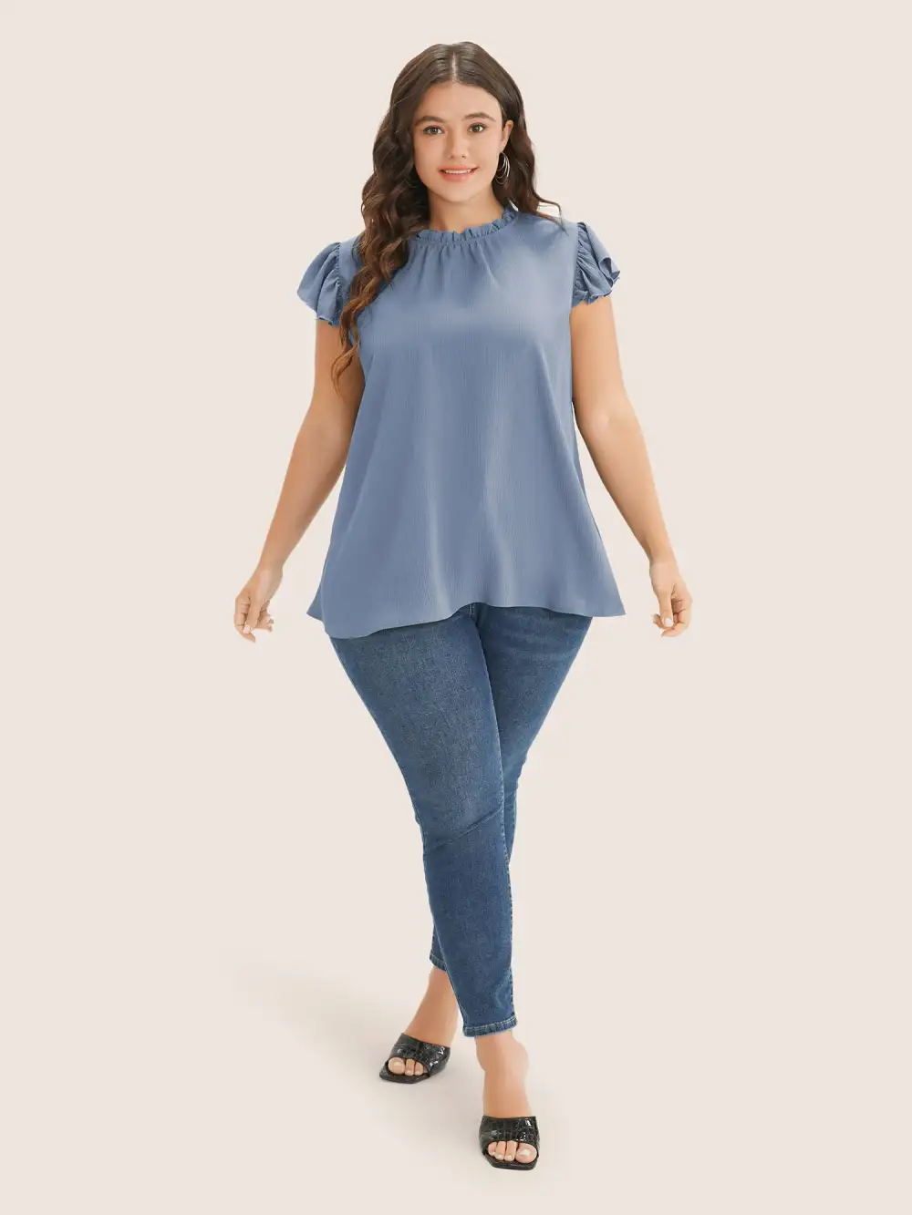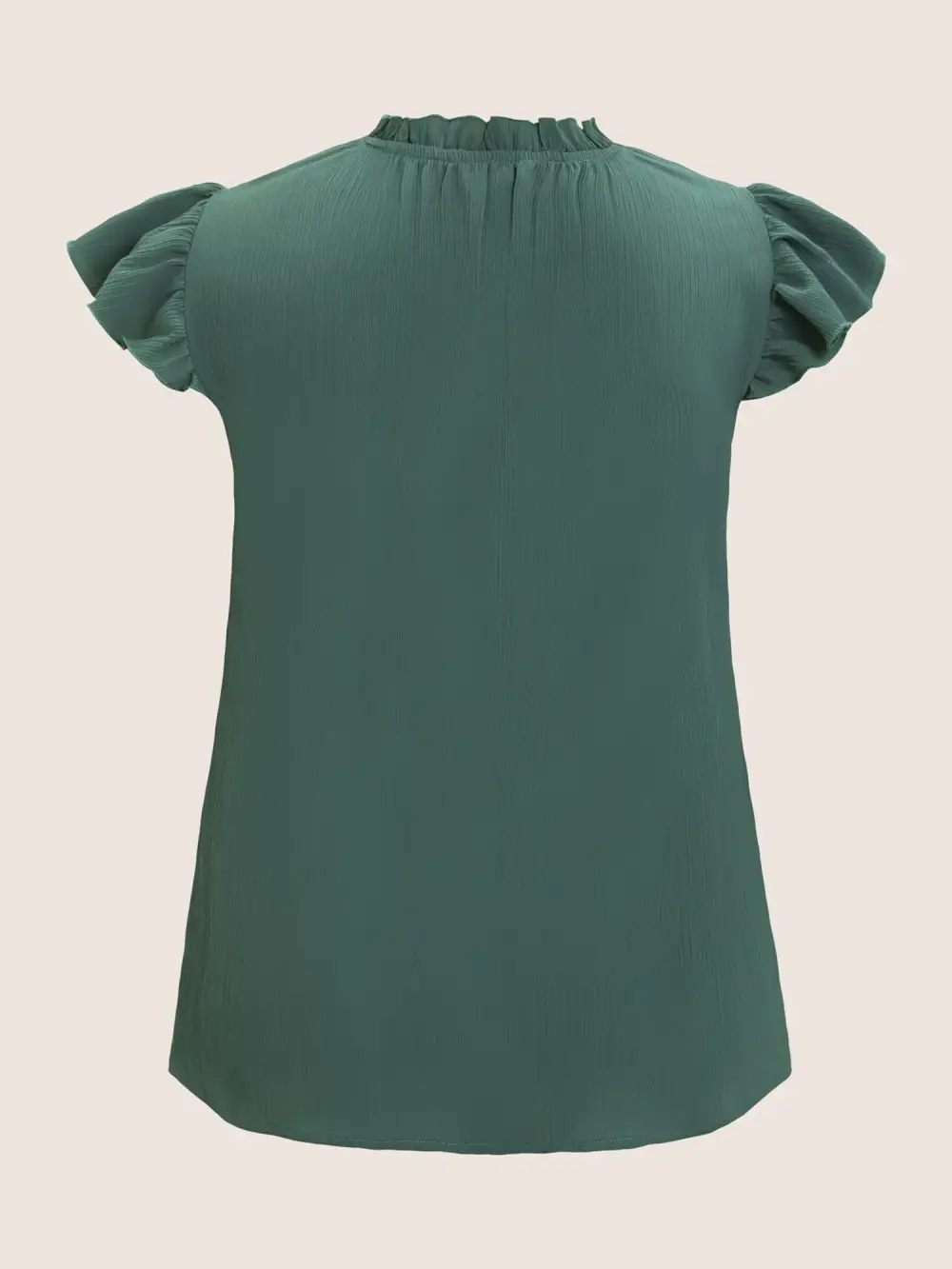 Plain Mock Neck Cap Sleeve Ruffle Trim Blouse