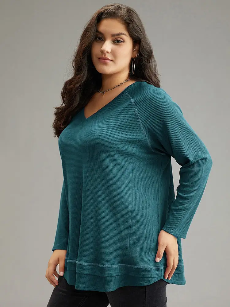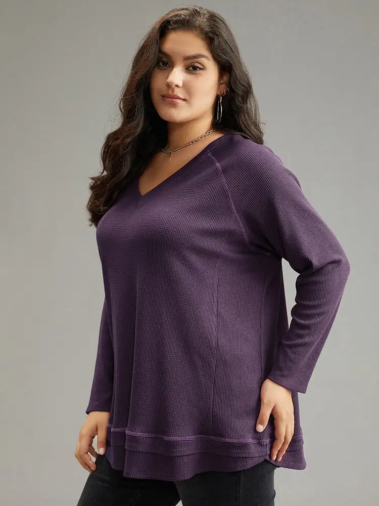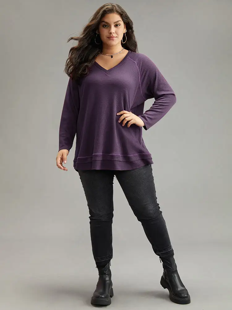 Plain Textured Stitch Raglan Sleeve Sweatshirt