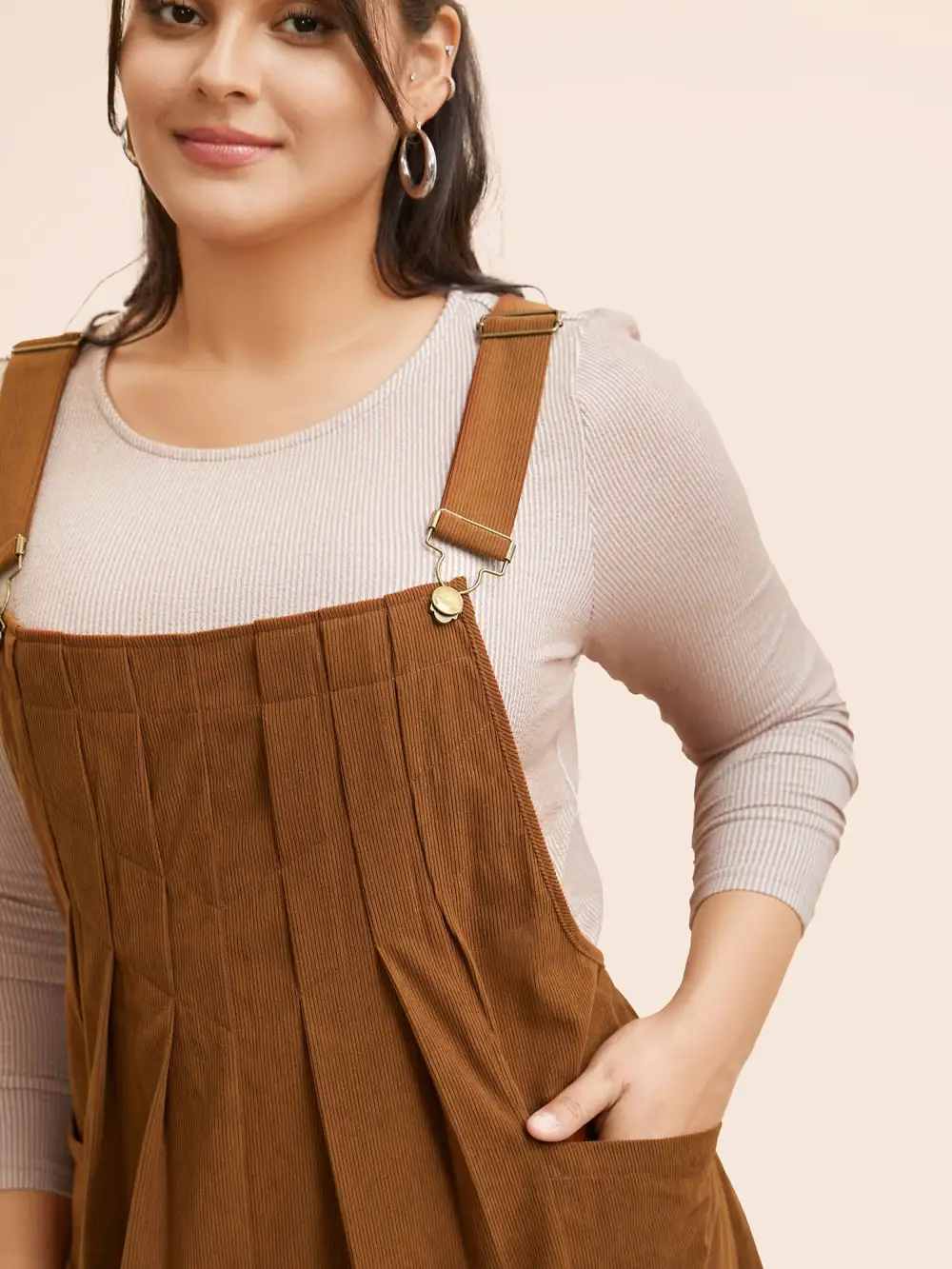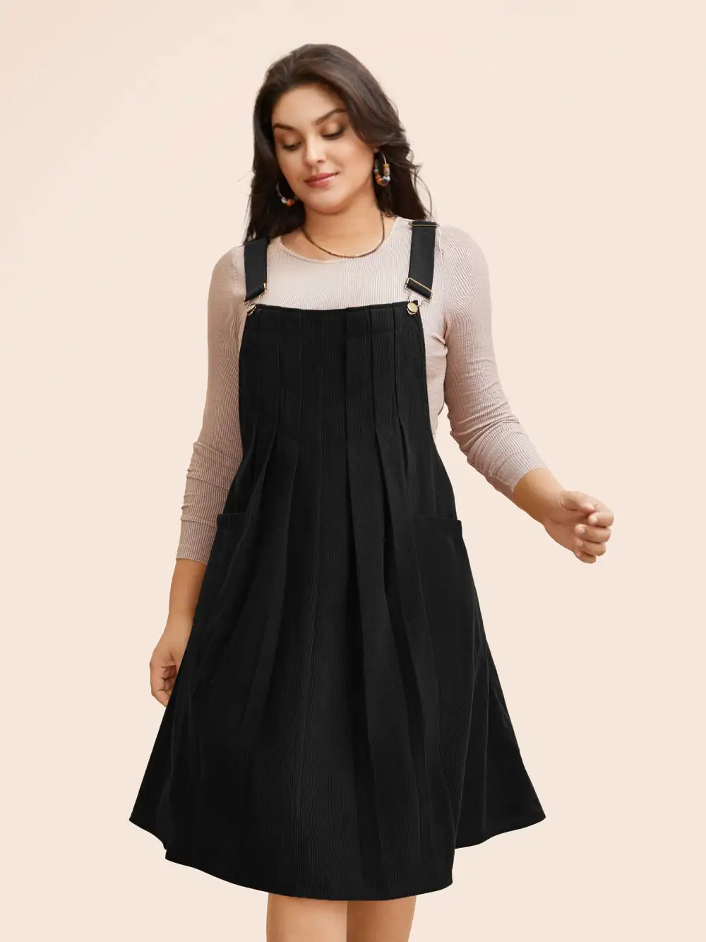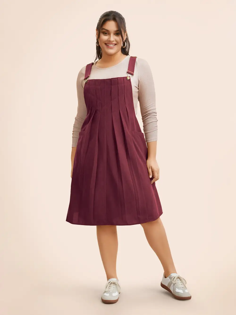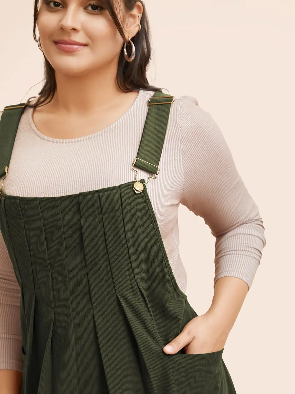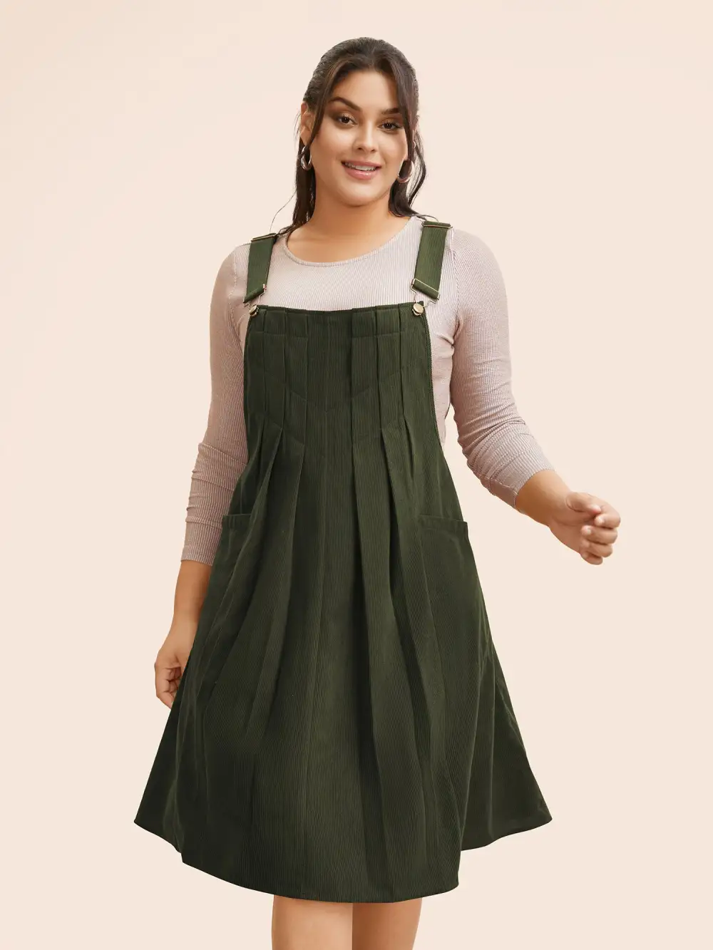 Solid Corduroy Pleated Overall Dress