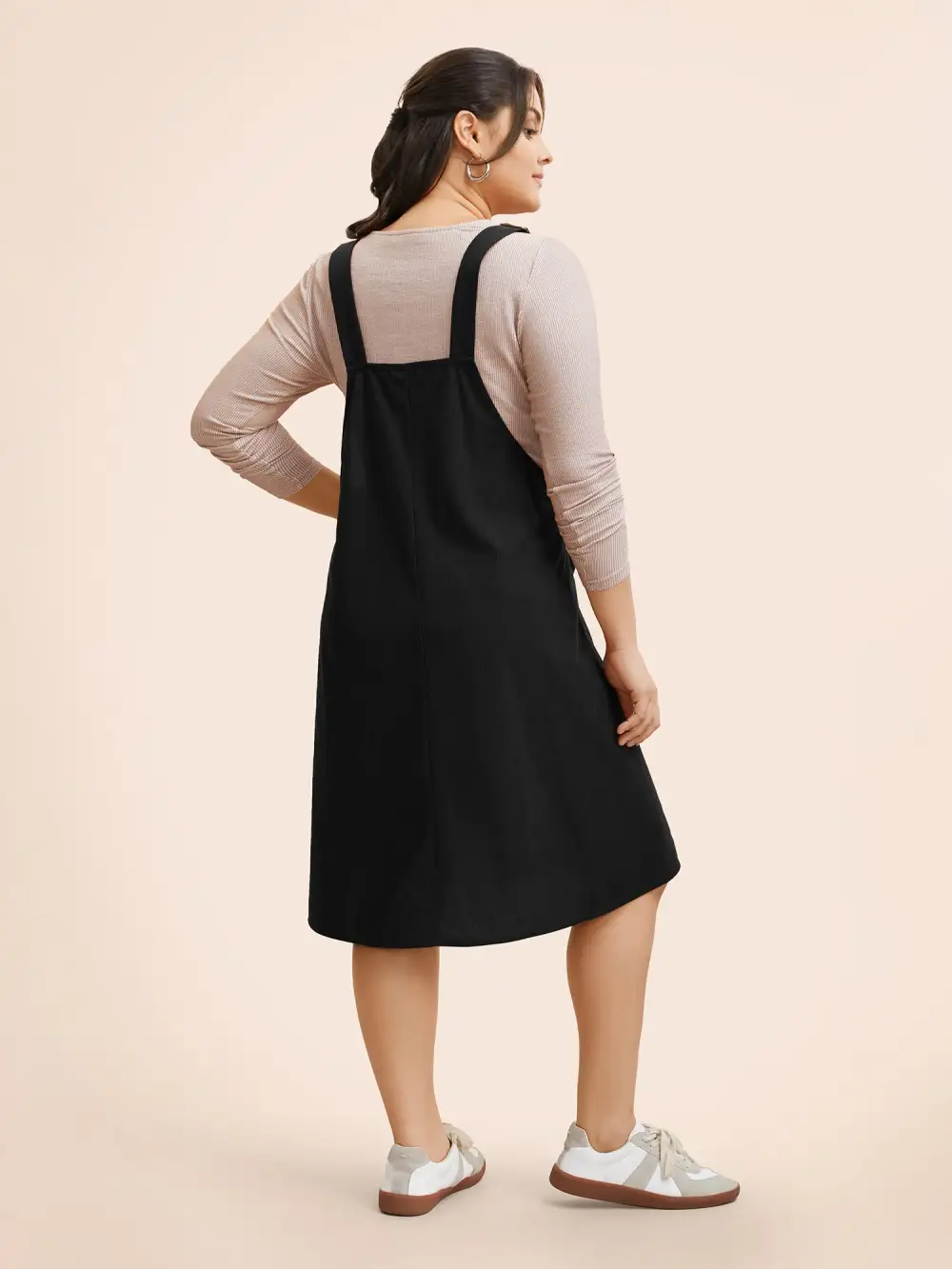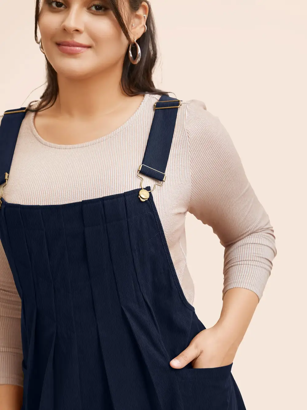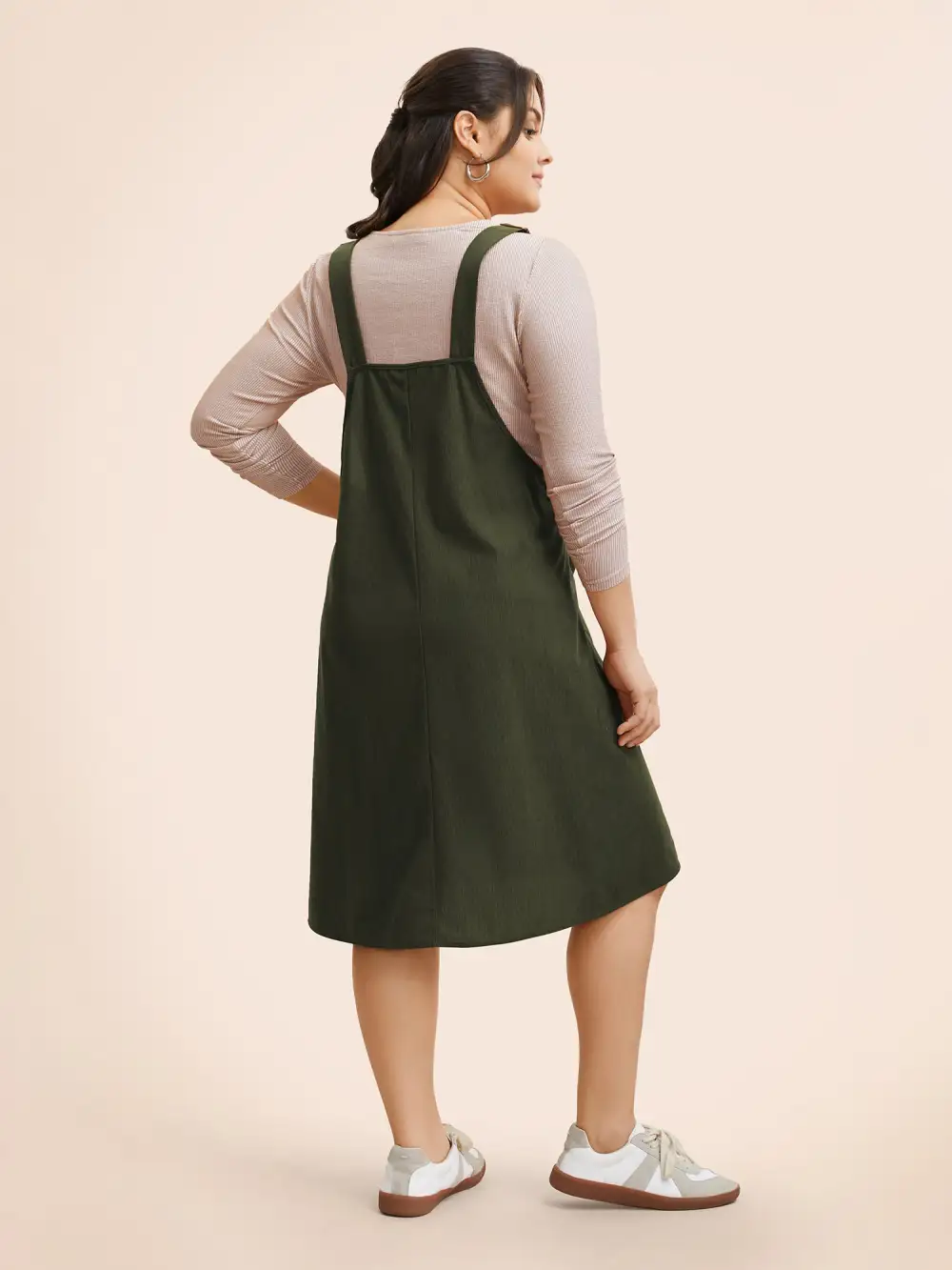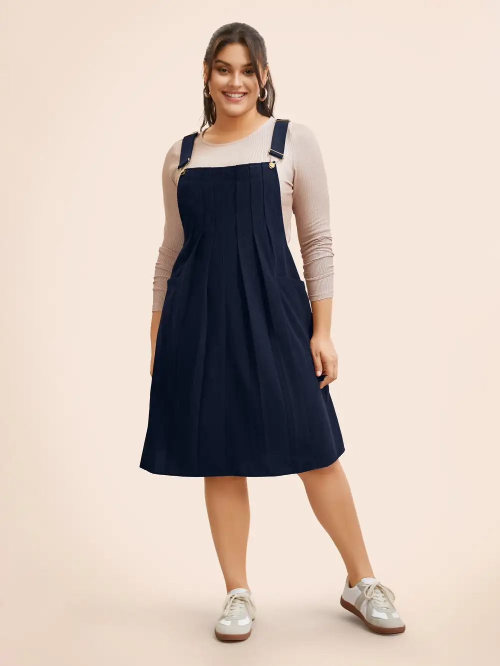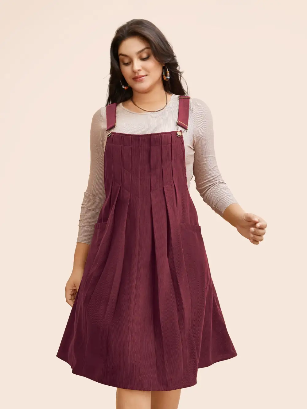 Solid Corduroy Pleated Overall Dress