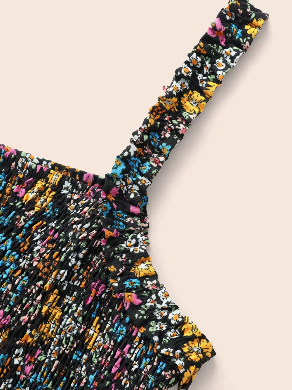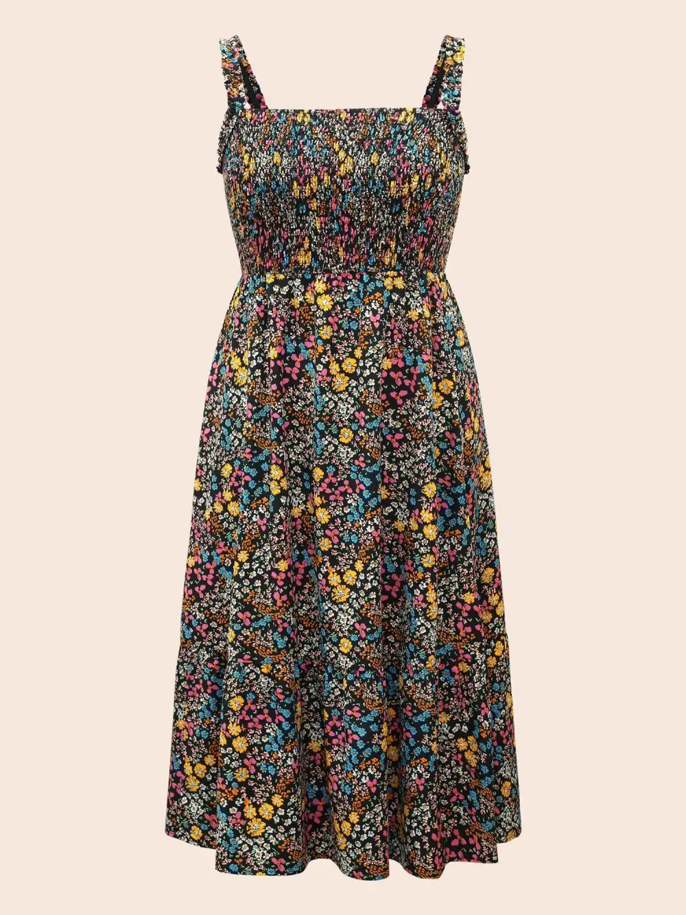 Ditsy Floral Shirred Ruffles Midi Dress