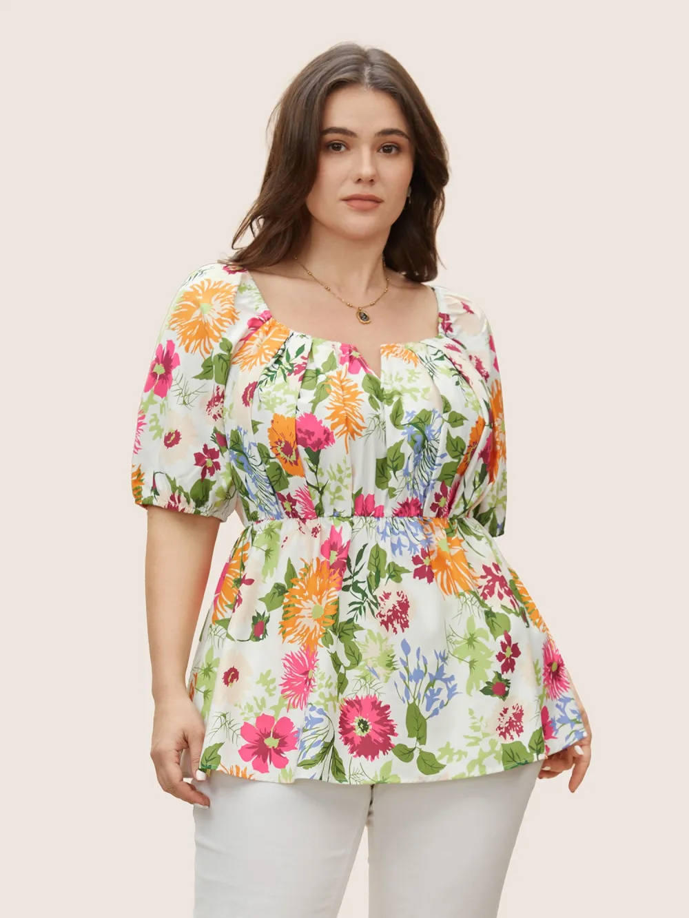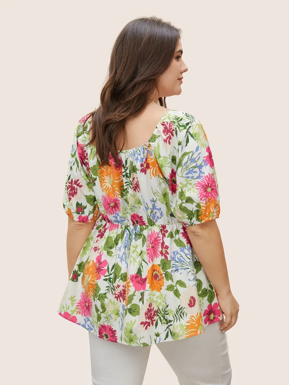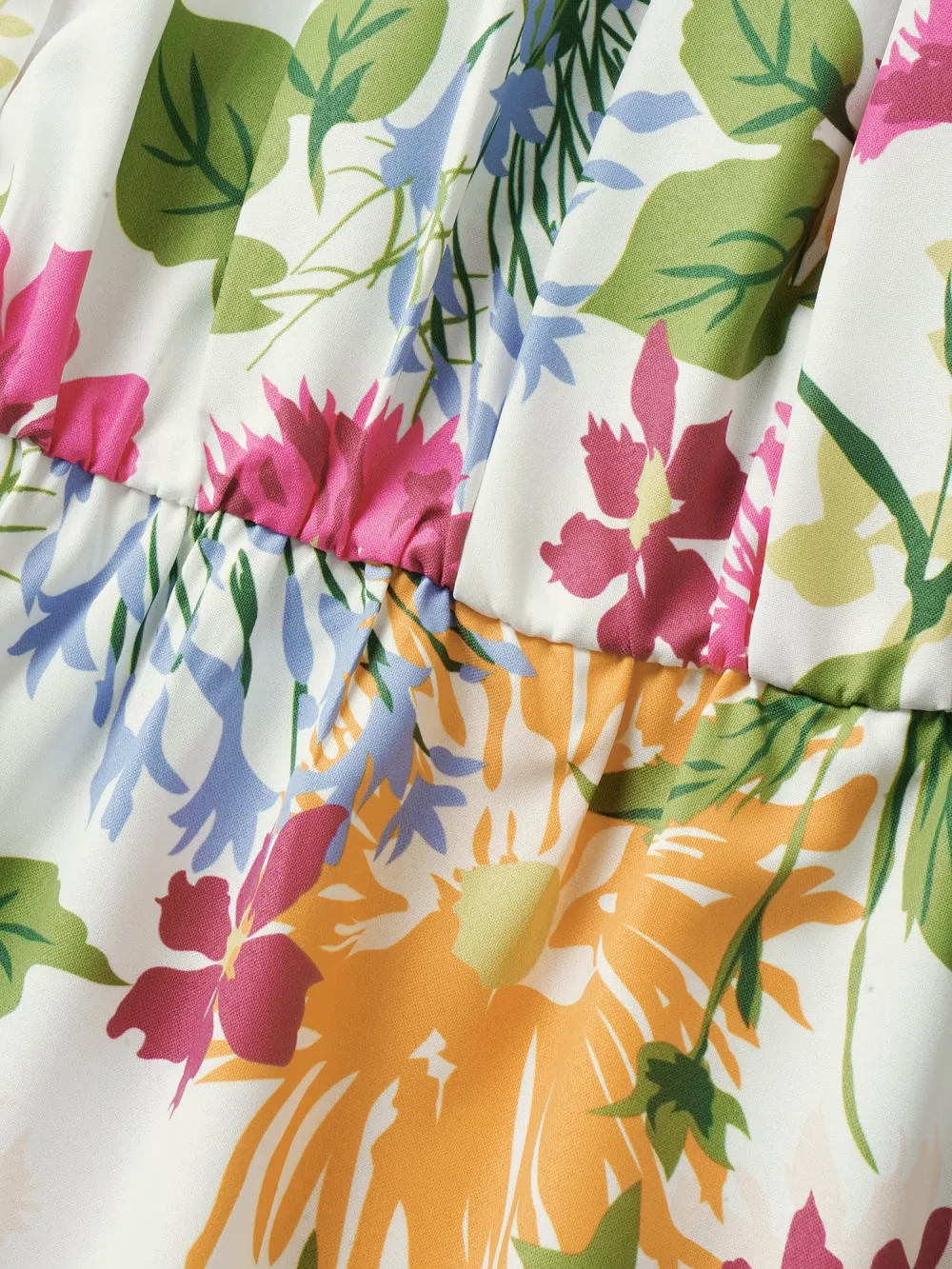 Floral Pleated Elastic Waist Ruffle Sleeve Blouse