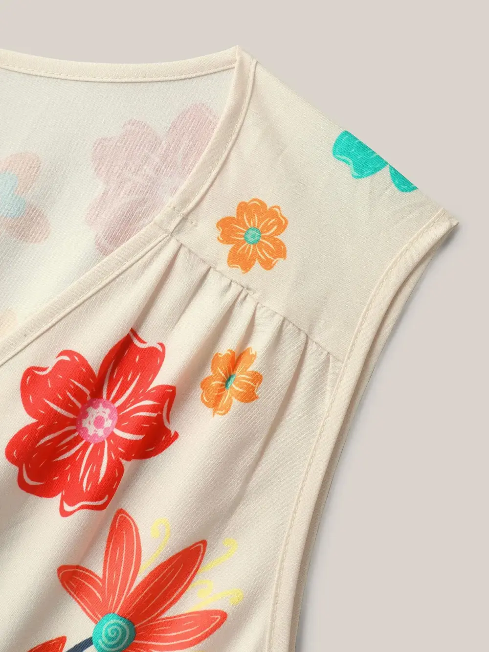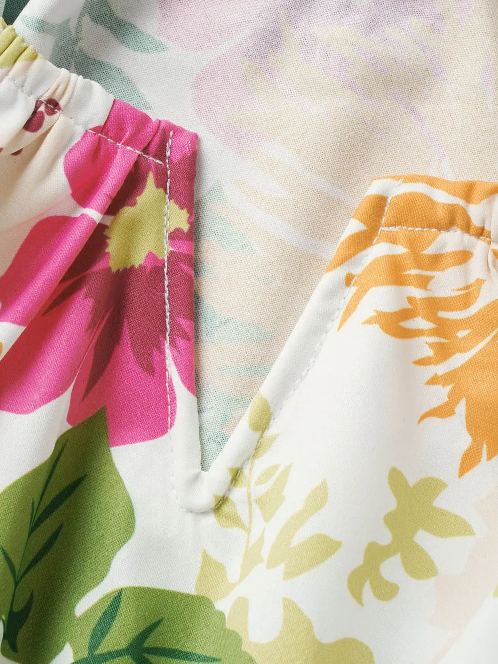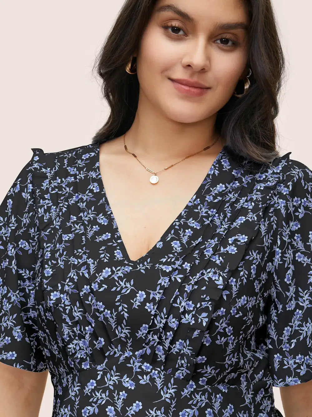 Floral Pleated Elastic Waist Ruffle Sleeve Blouse