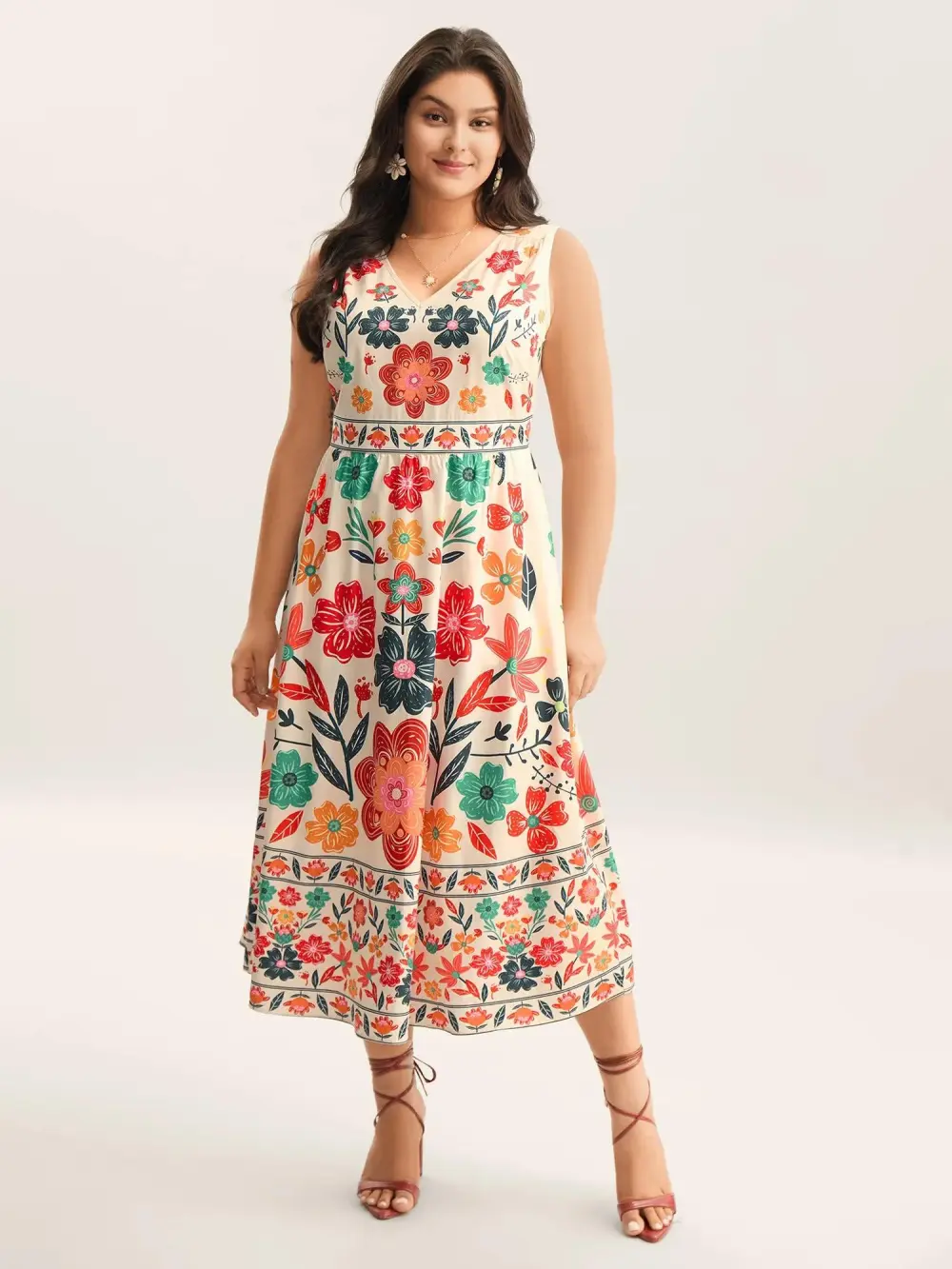 Floral Drama Cinched-Waist Maxi Dress